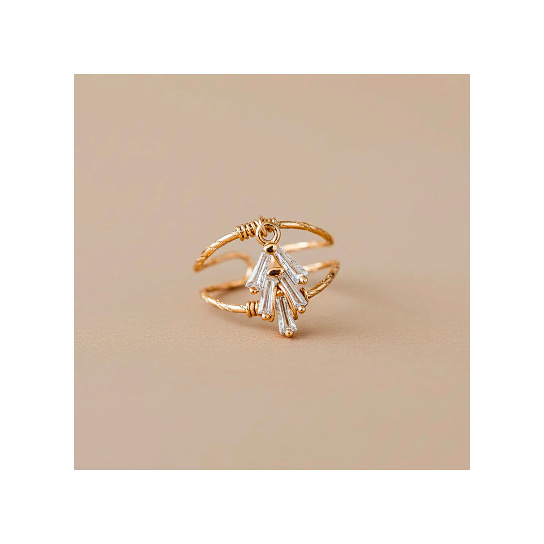 Jolie bague Gatsby dorée ornée de pendentifs en zircons blancs, entièrement fabriquée en France.