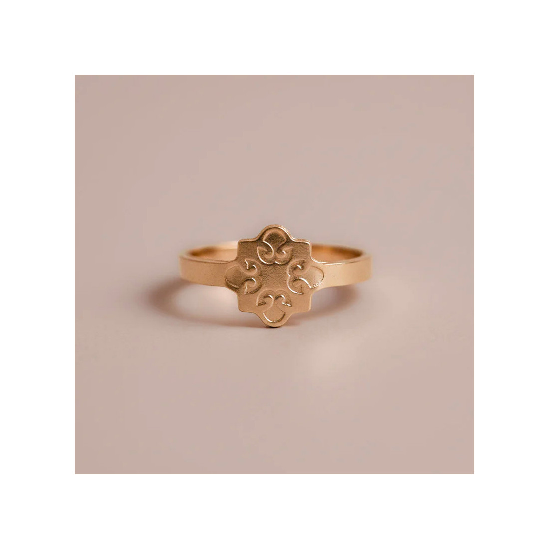 Bague dorée réglable finement gravée et colorée, inspirée des azulejos portugais.