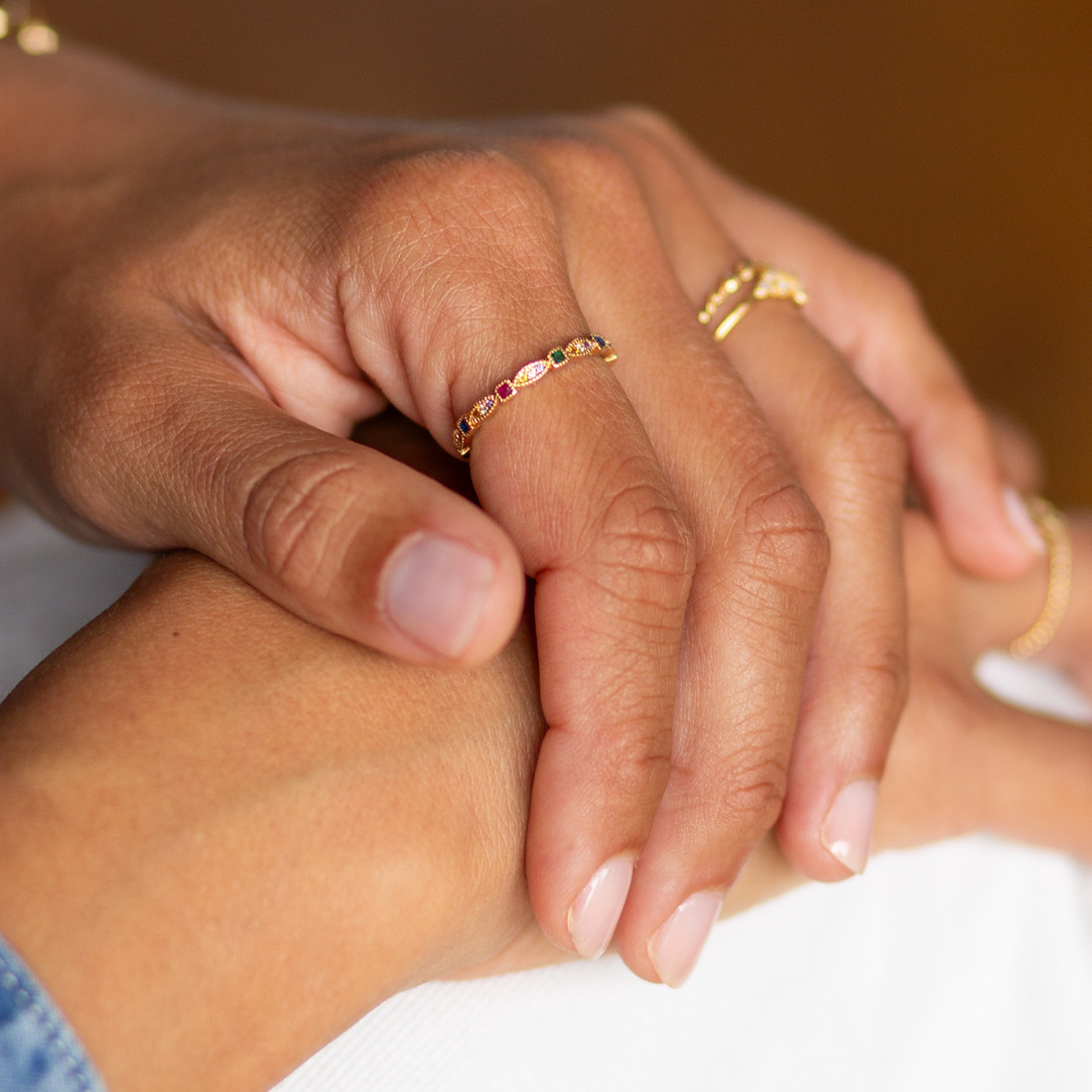 Bague couronne en plaqué or et pierres multicolore