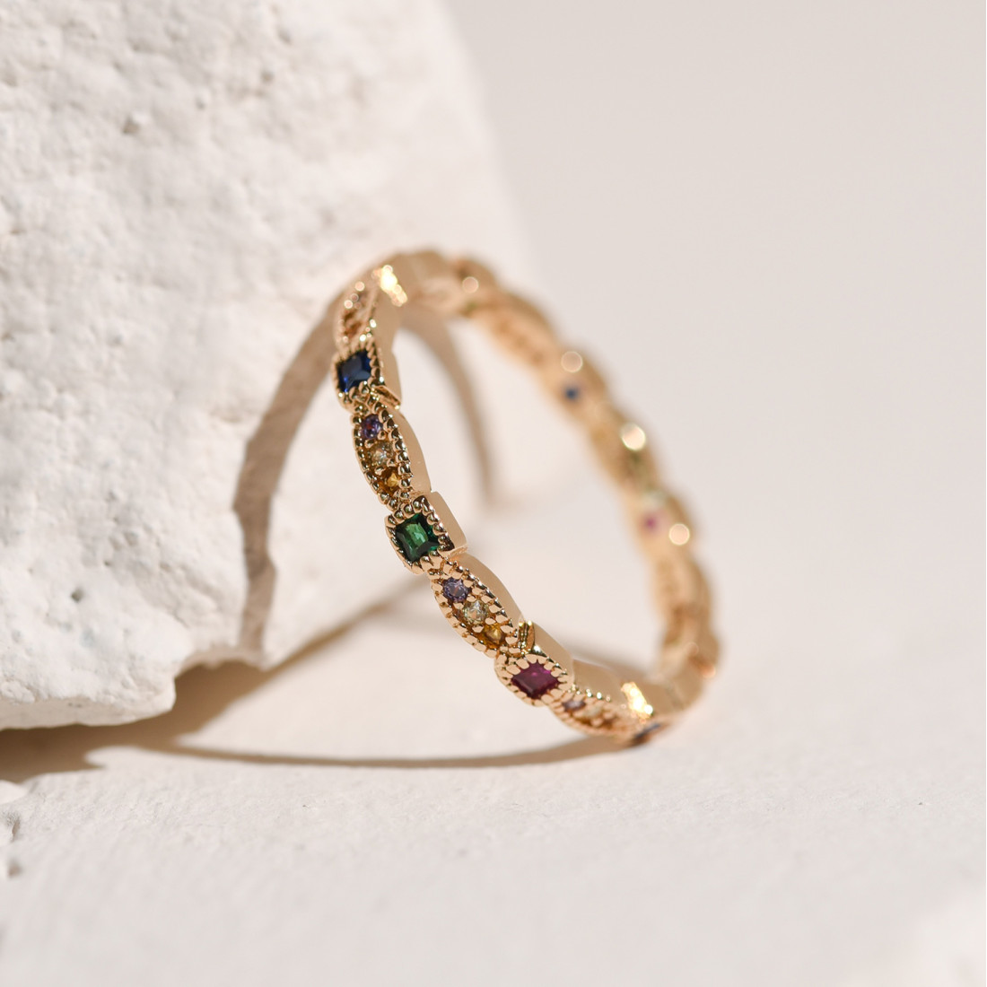 Apportez une touche de couleur et de modernité à votre style avec cette sublime bague plaqué or 3 microns ornée de zircons multicolores en serti perlé. Cette jolie bague forme couronne très fine et délicate sera parfaite portée seule ou en accumulation. C'est un bijou coup de coeur à offrir ou s'offrir sans attendre ! Le serti perlé lui donne un charme rétro dans l'esprit art déco, qui en fait un bijou raffiné et plein de charme.