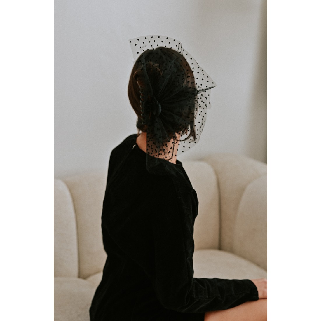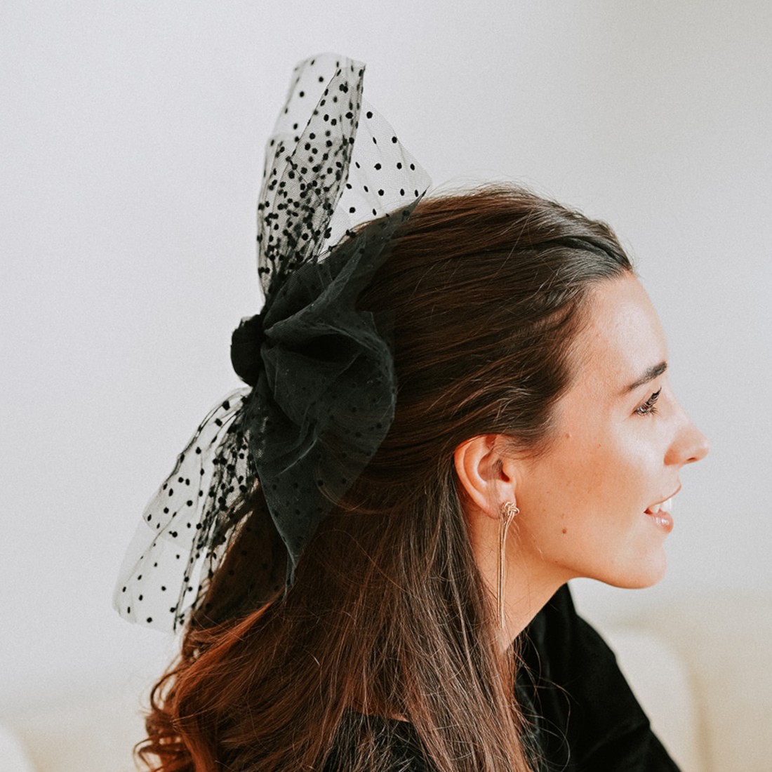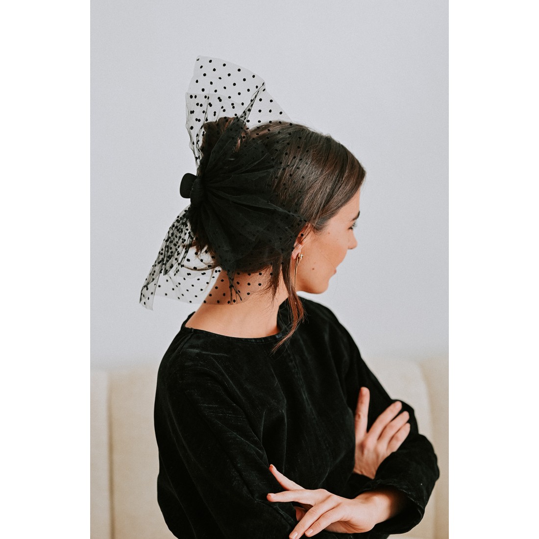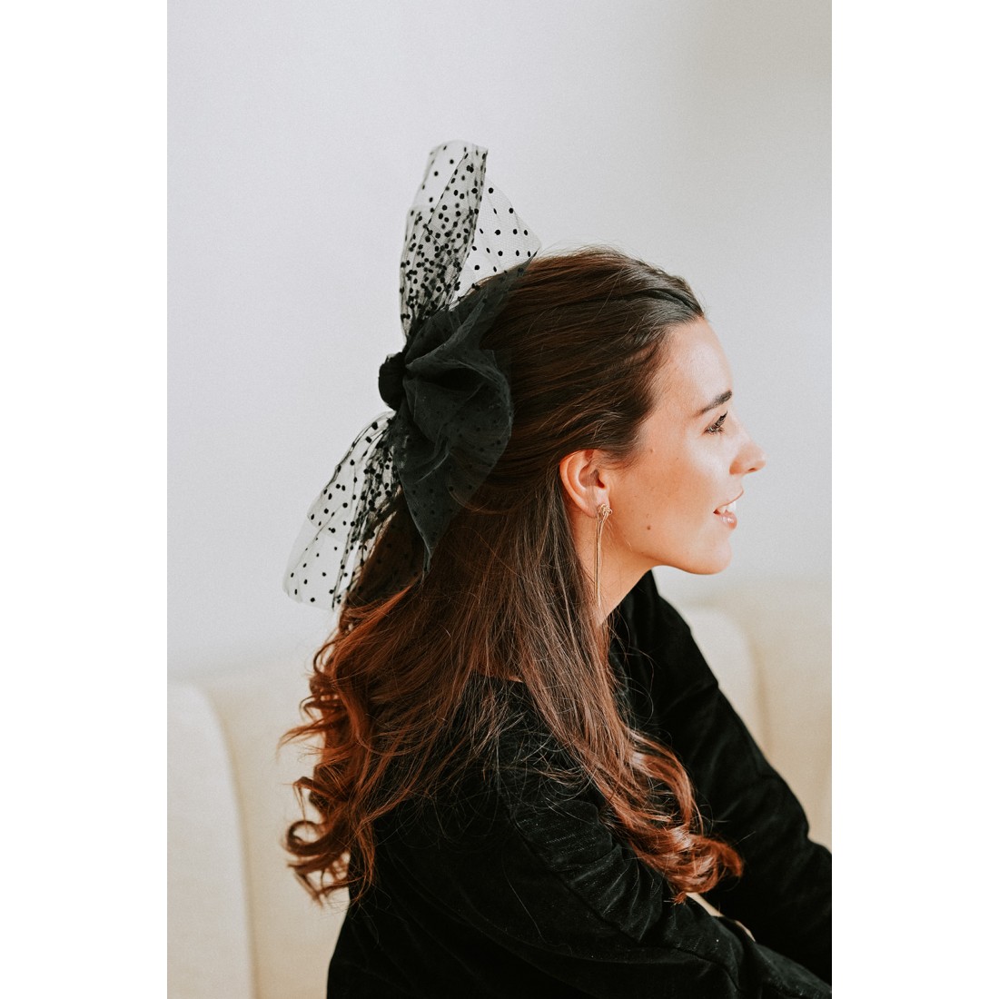 Barrette/pince noire garnie d'un jolie volant en tulle et plumetis noir. Cette barrette aux accents espagnols rehaussera vos tenues en toutes occasions.
