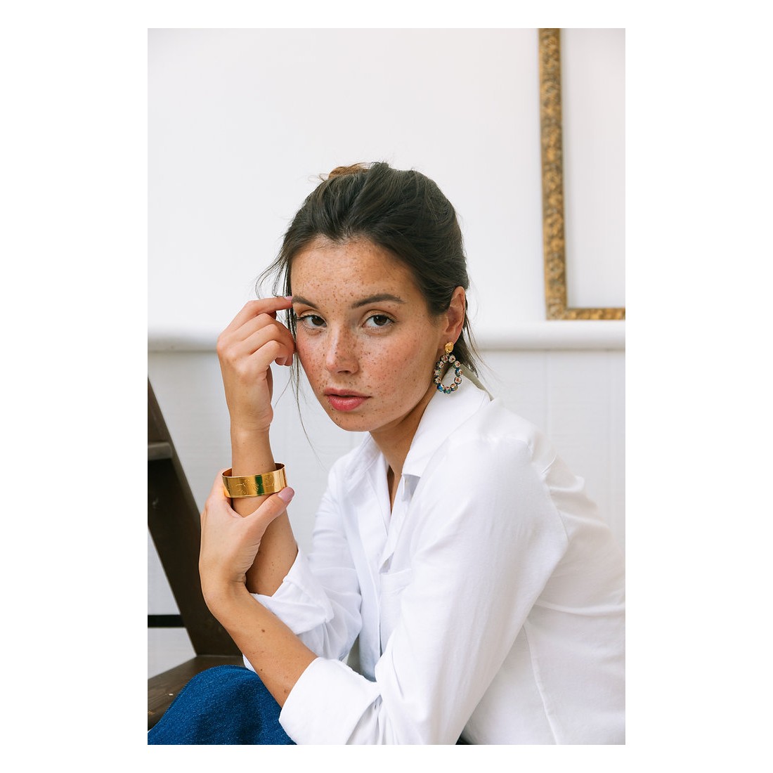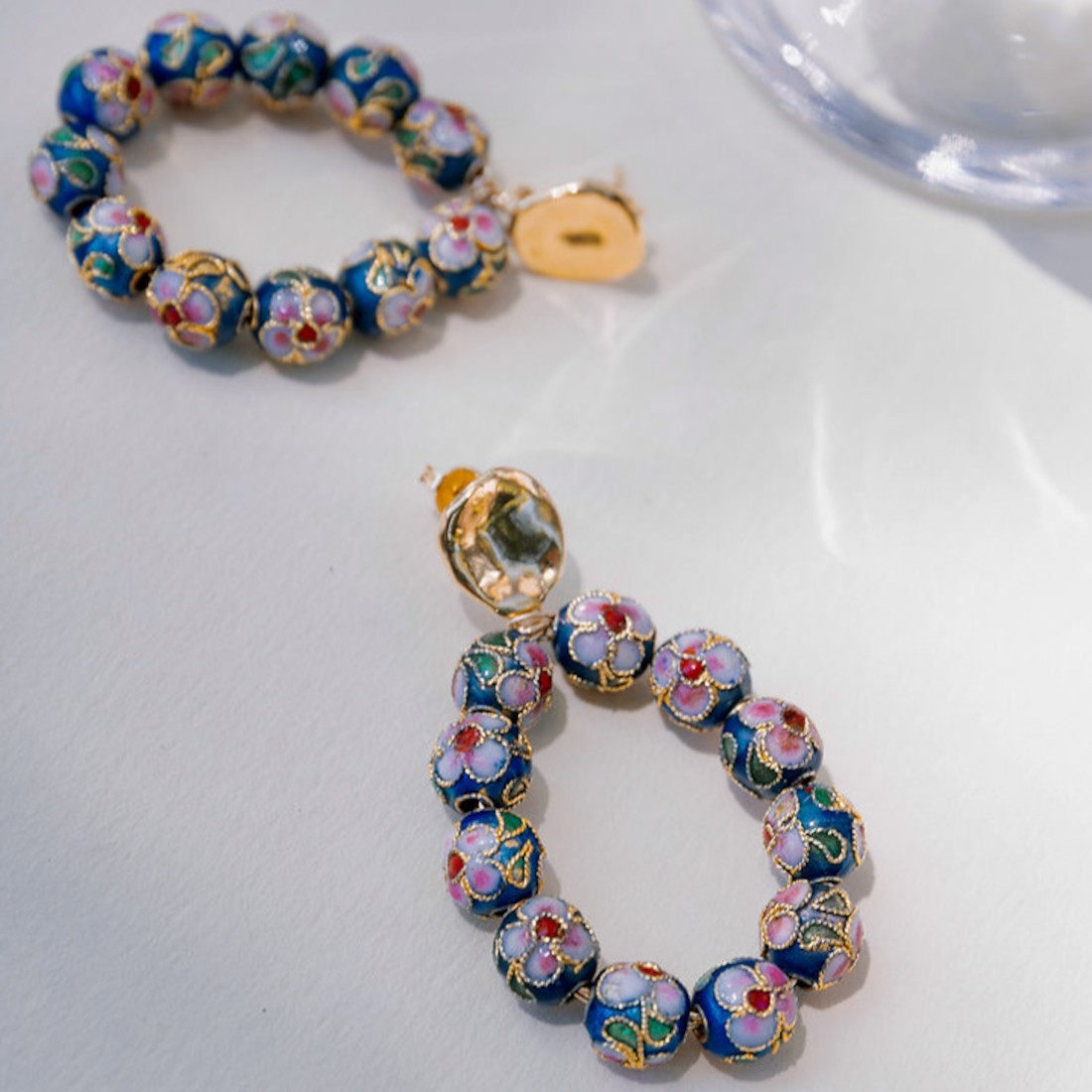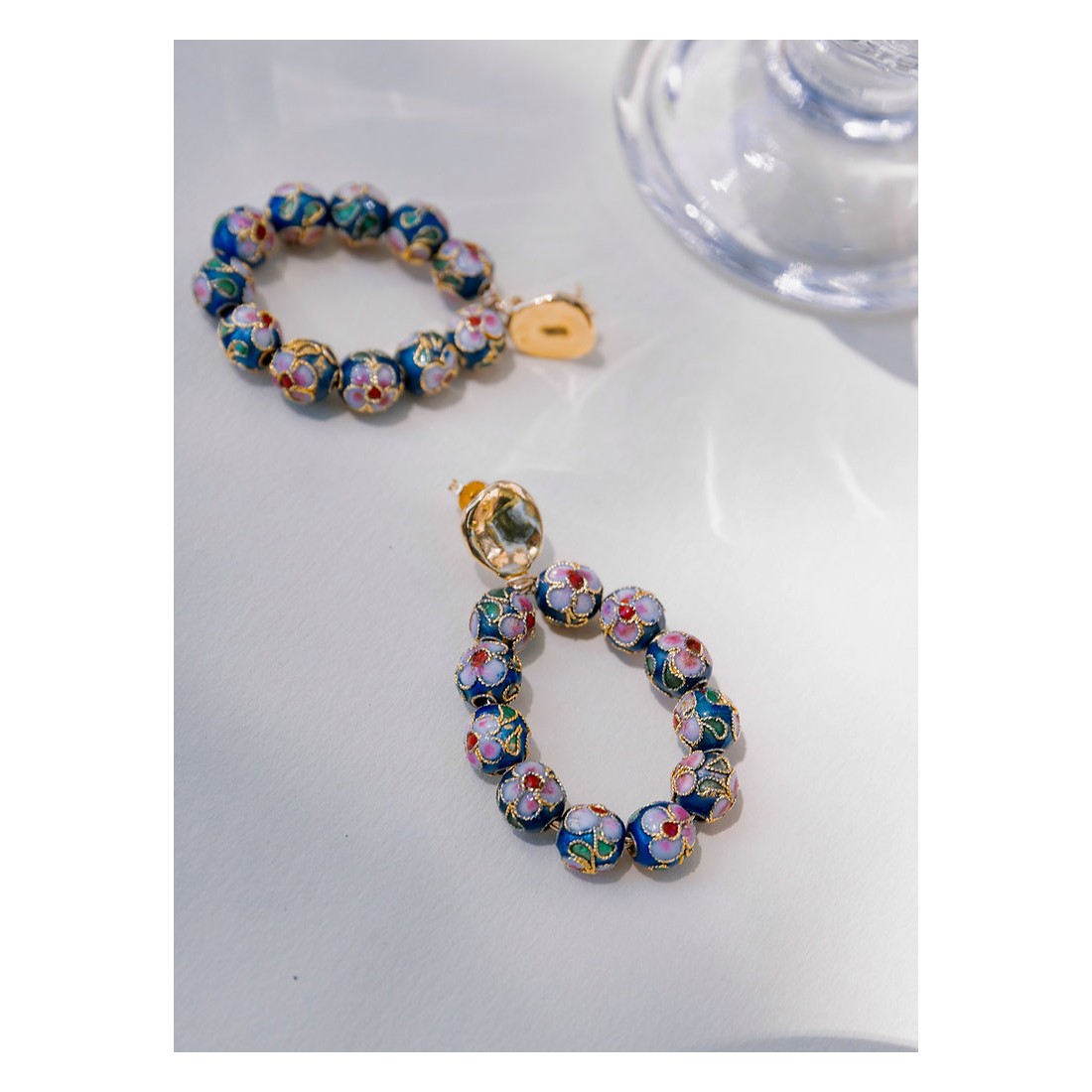 Boucles d'oreilles plaquées or 3 microns agrémentées de perles au détails fleuris. Ces jolies boucles d'oreilles sont entièrement confectionnées à la main, dans l'atelier Nantais de notre créatrice.