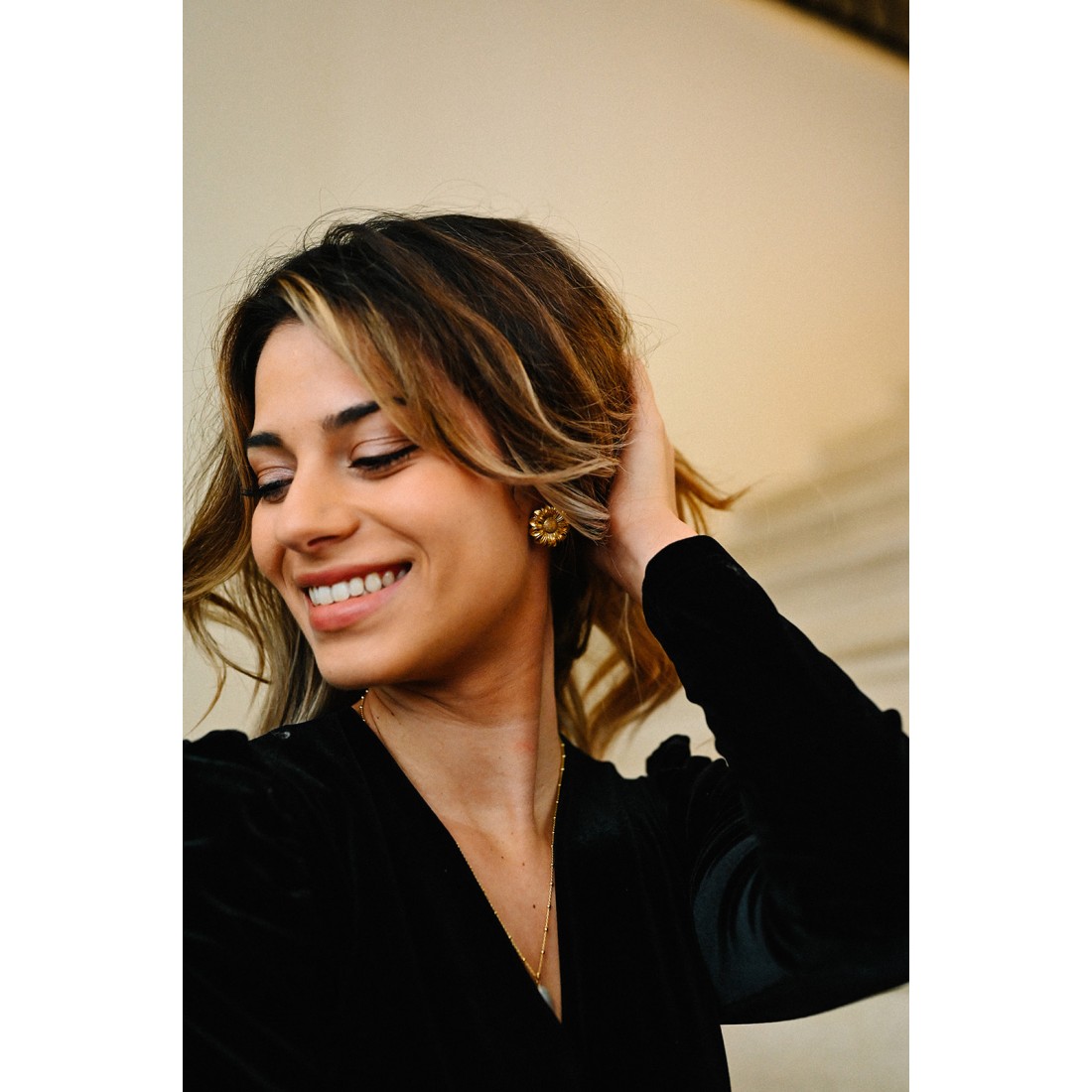 Dorées à l'or 24 carats, pour limiter tout risque d'allergie et d'oxdydation. Montées sur clou d'oreilles ou sur clips pour les oreilles non percées.