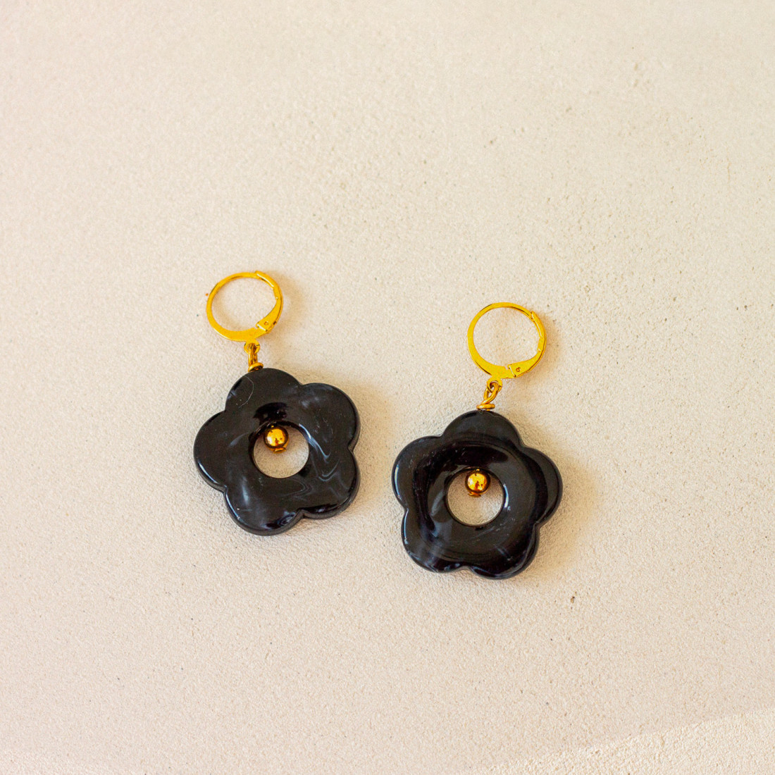 Boucles d'oreilles noires fleurs résine Pam - Comptoir Doré