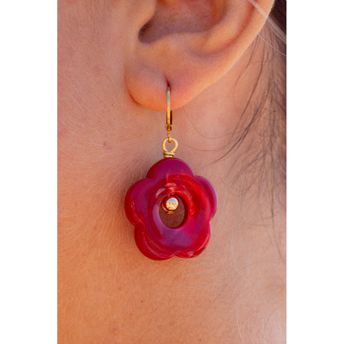 Boucles d'oreilles rouge fleurs résine Pam - Comptoir Doré