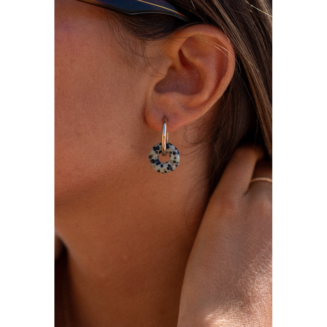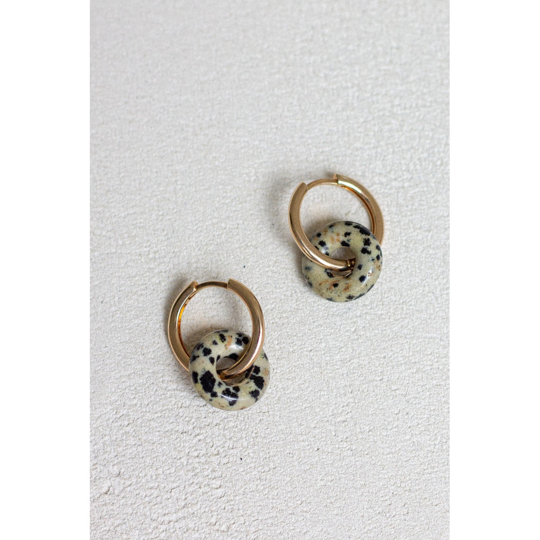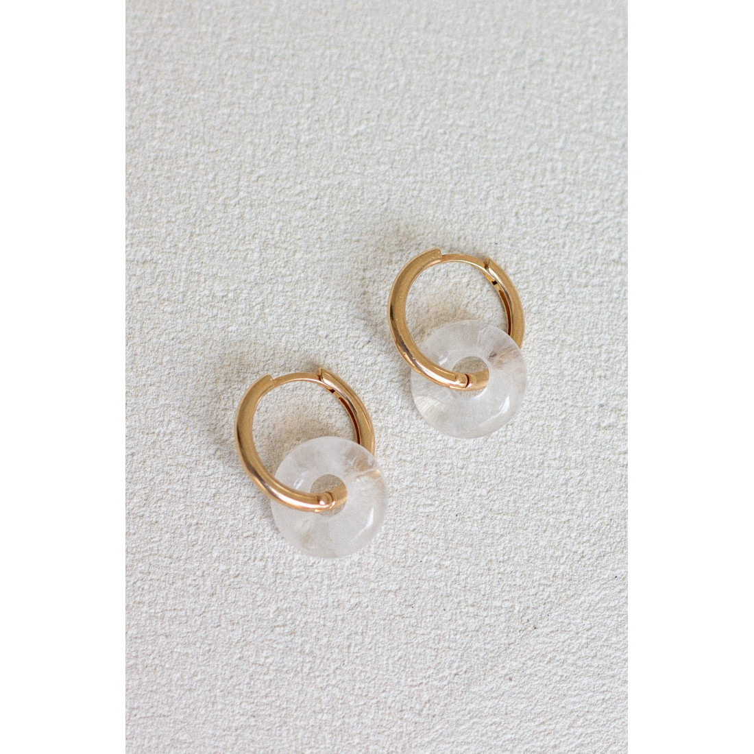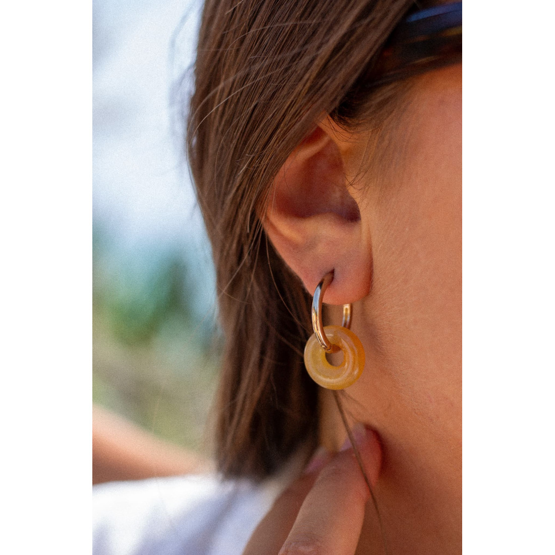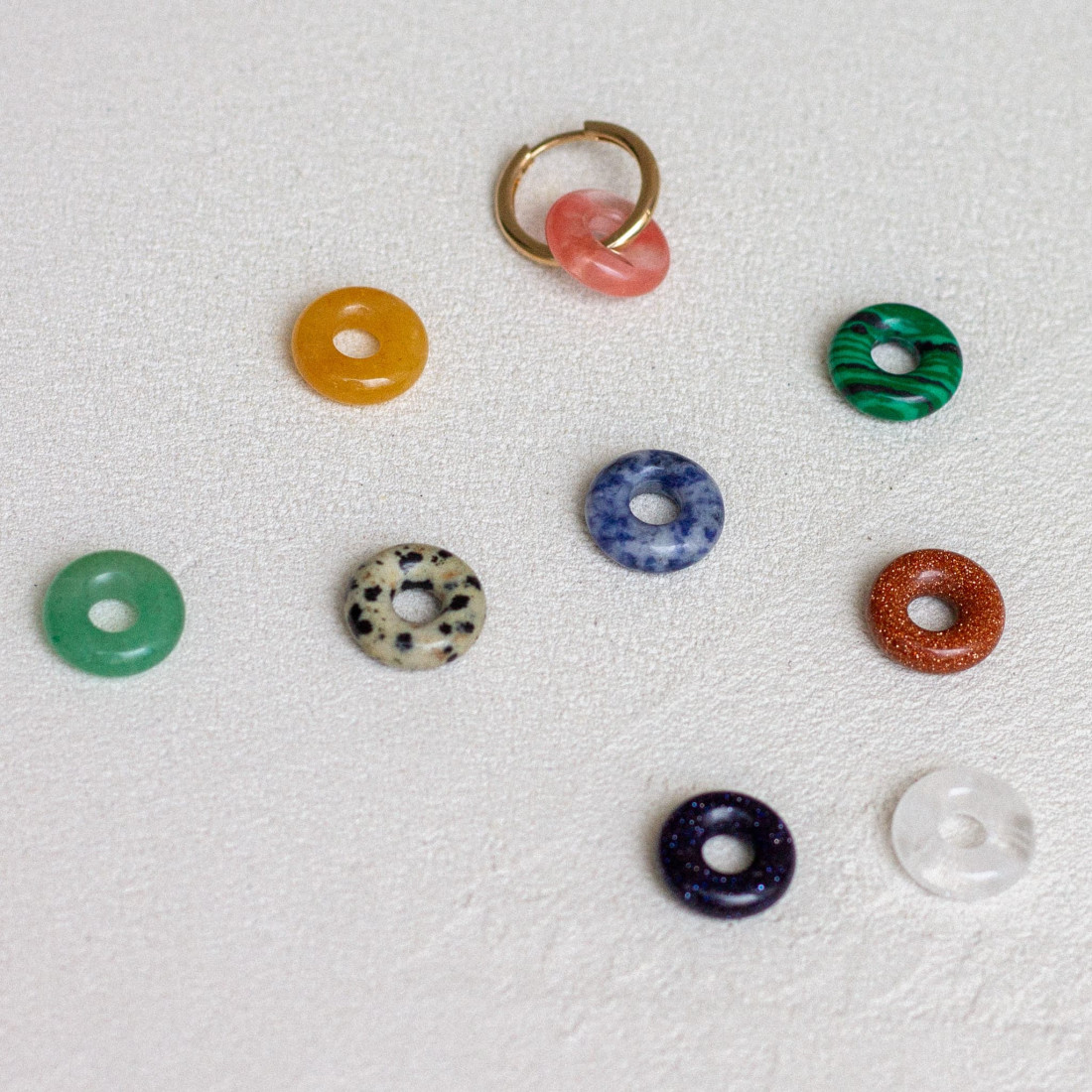 Nos créoles en plaqué or 3 microns se réinventent chaque jour grâce à leurs anneaux interchangeables en pierres fines naturelles. Un bijou modulable, solaire et élégant, pensé pour suivre vos envies et sublimer toutes vos tenues — du look casual au plus habillé.