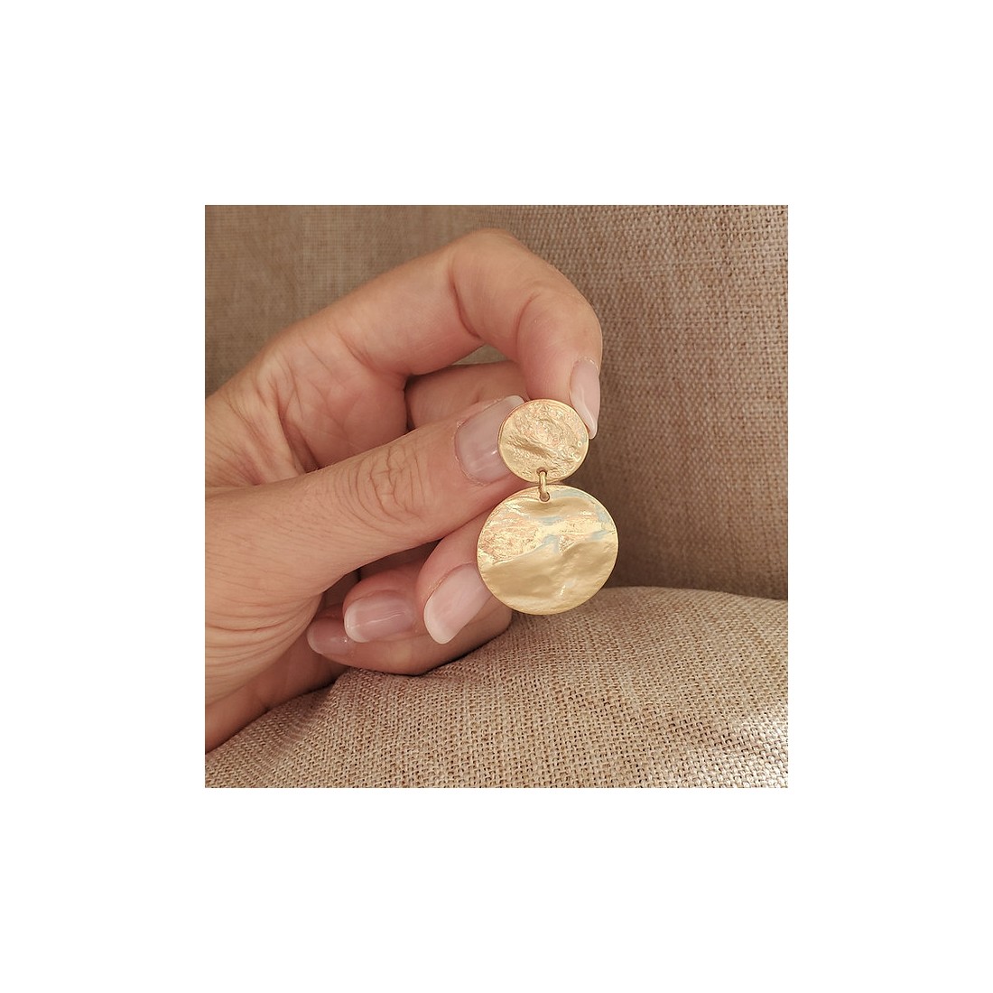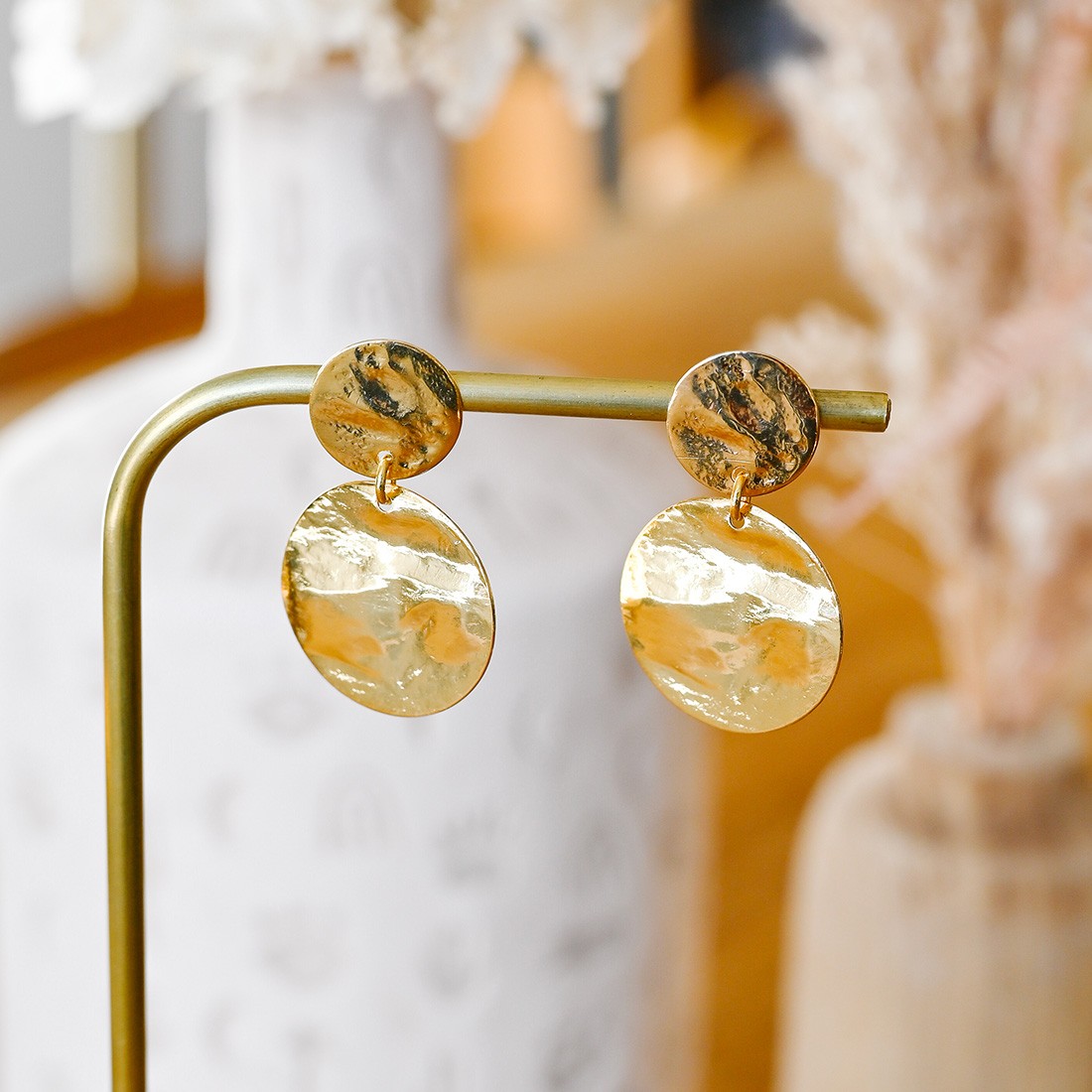 Jolies boucles d'oreilles entièrement dorées à l'or fin 24 carats avec un effet martelé.