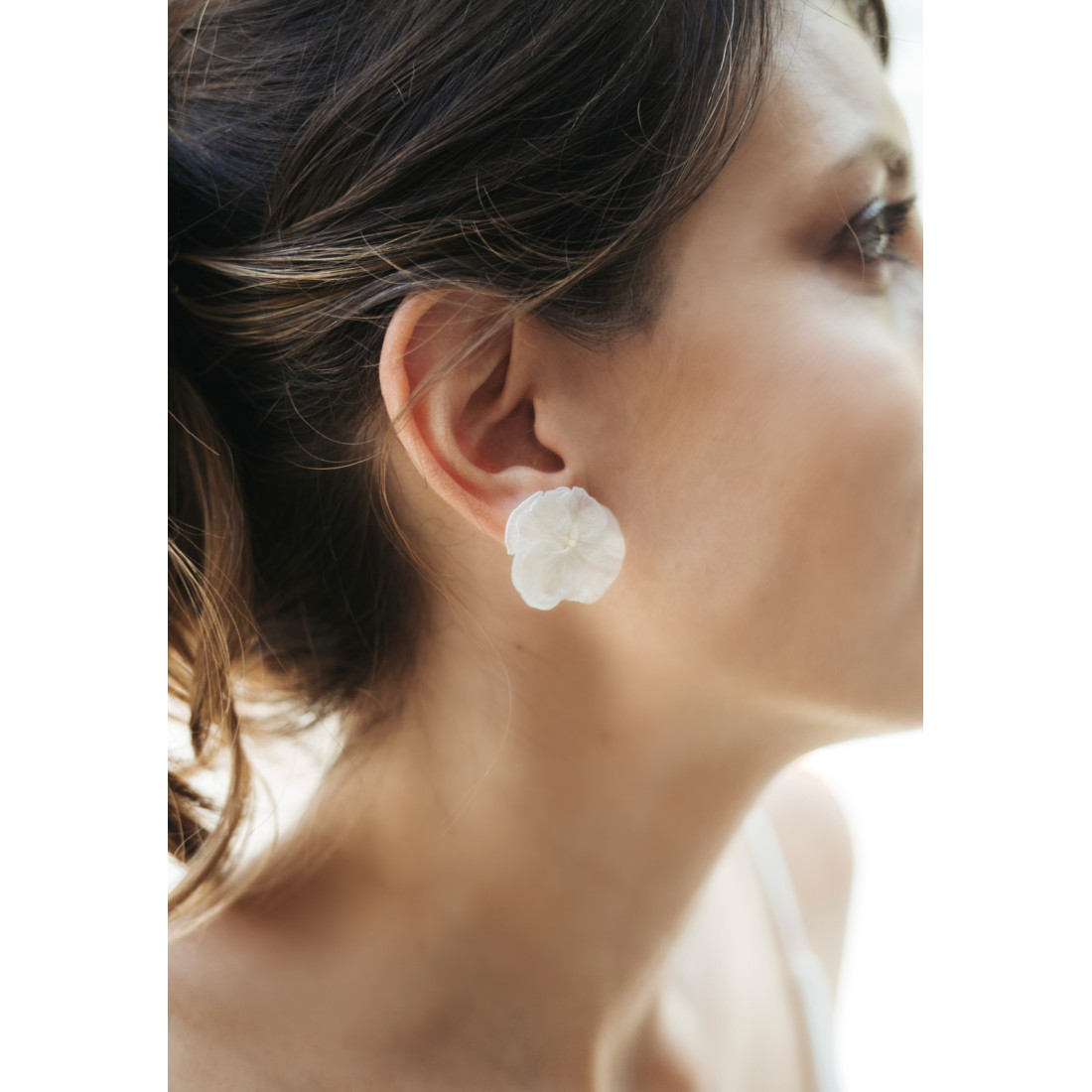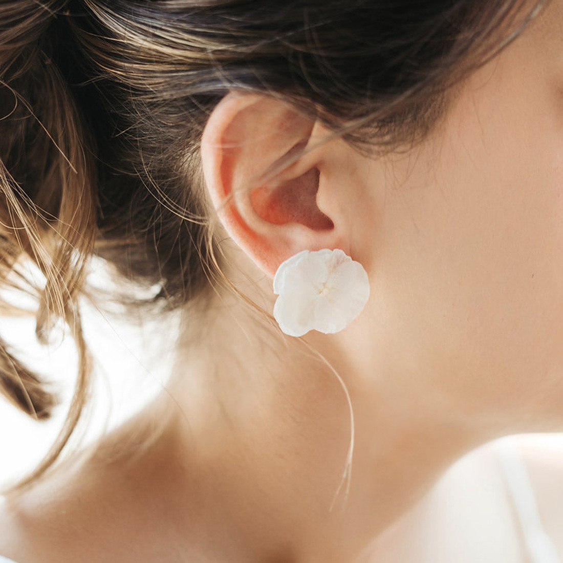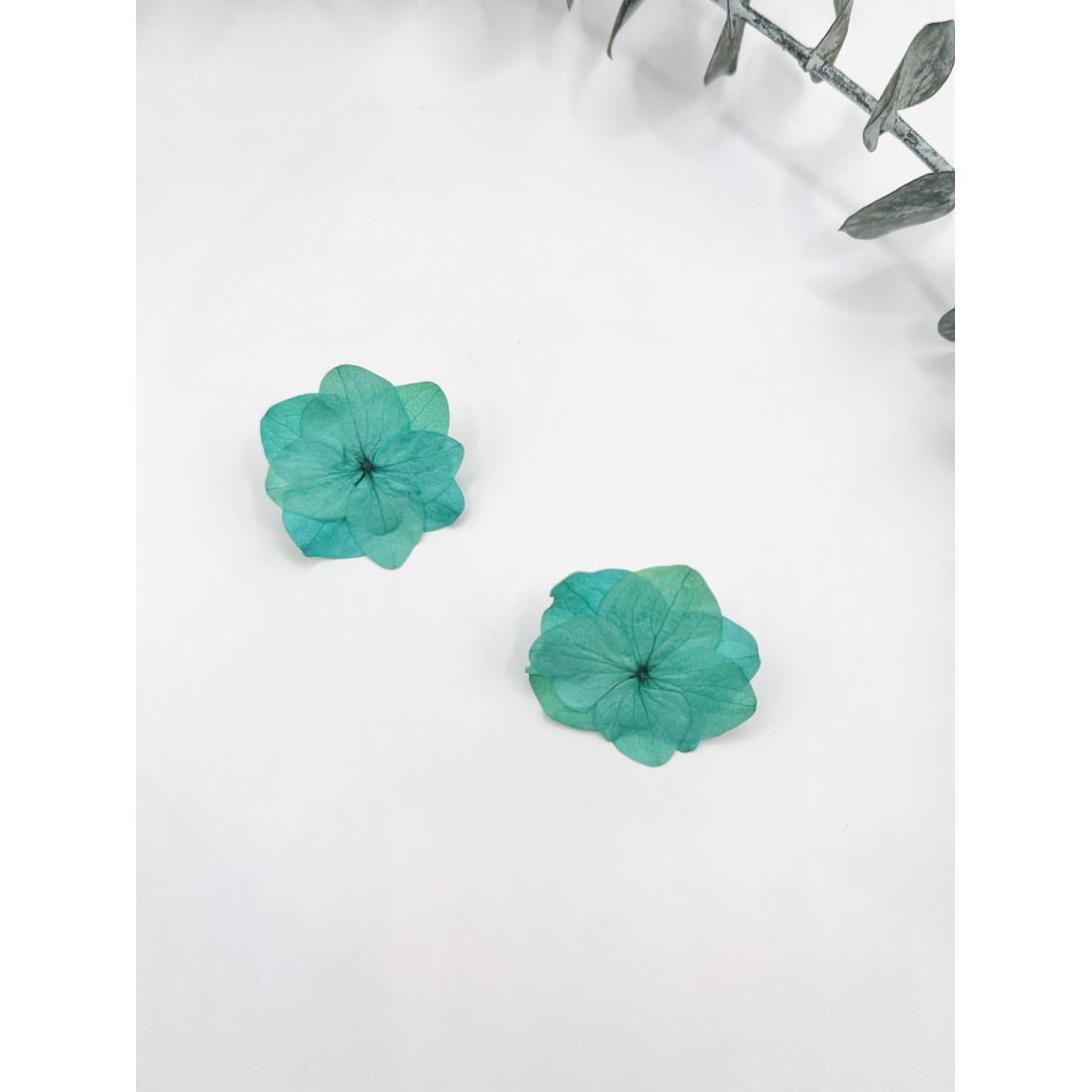 Petites boucles d'oreilles composées d'une fleur d'hortensia colorées montée sur un clou d'oreille en laiton. Les fleurs sont éternelles, c'est à dire stabilisées, afin de ne jamais vieillir ou ternir avec le temps.