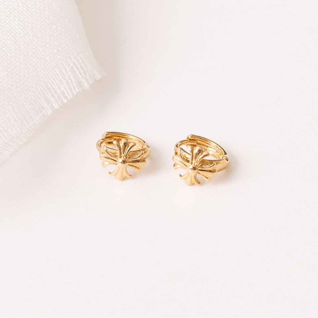 Adorables petites créoles ornées d'une croix à porter seules ou en accumulation. Entièrement plaqué or 3 microns.