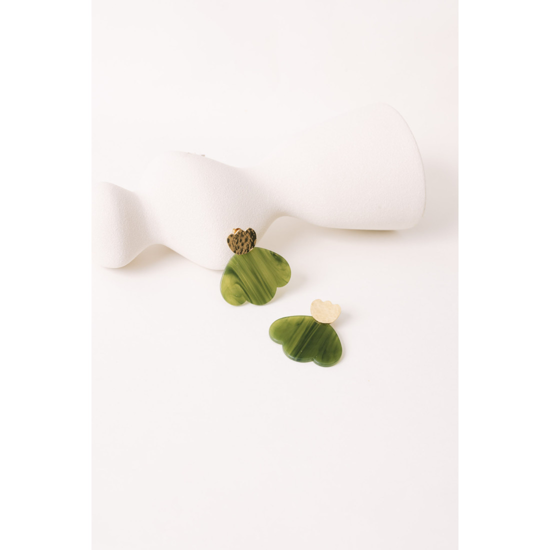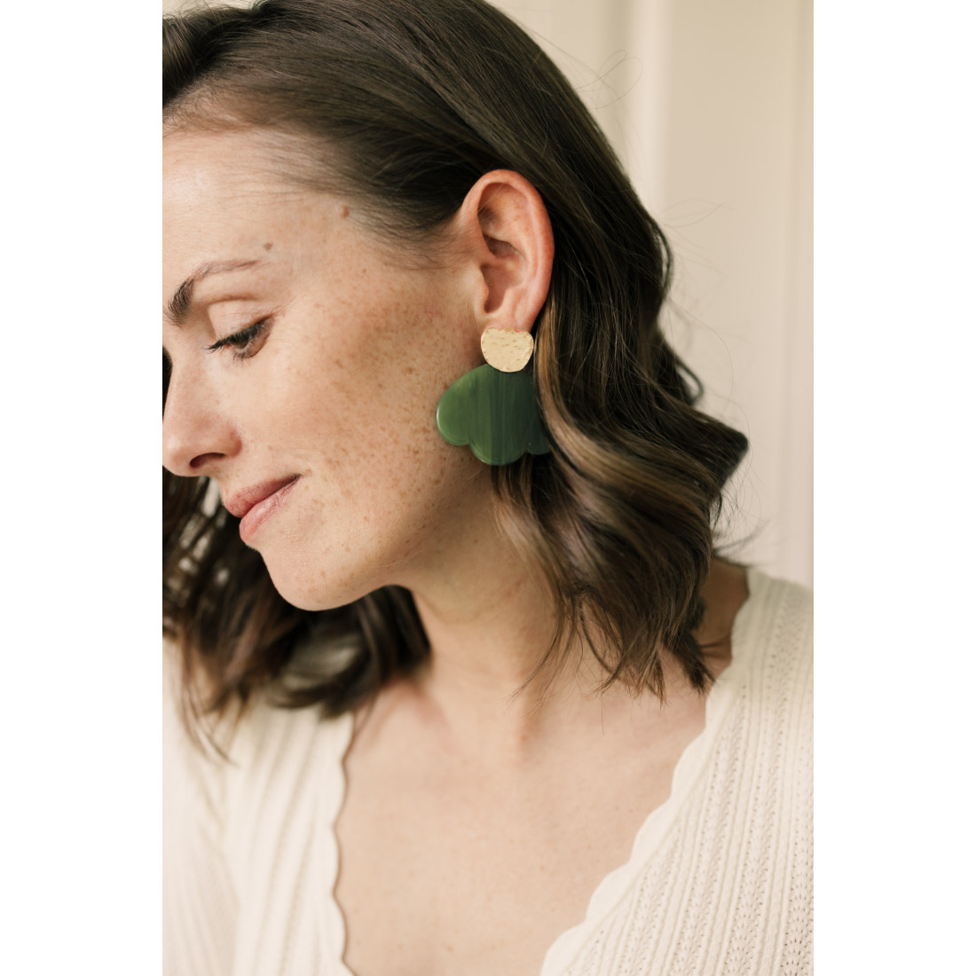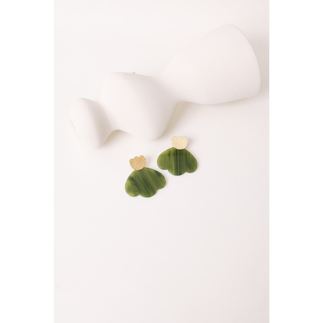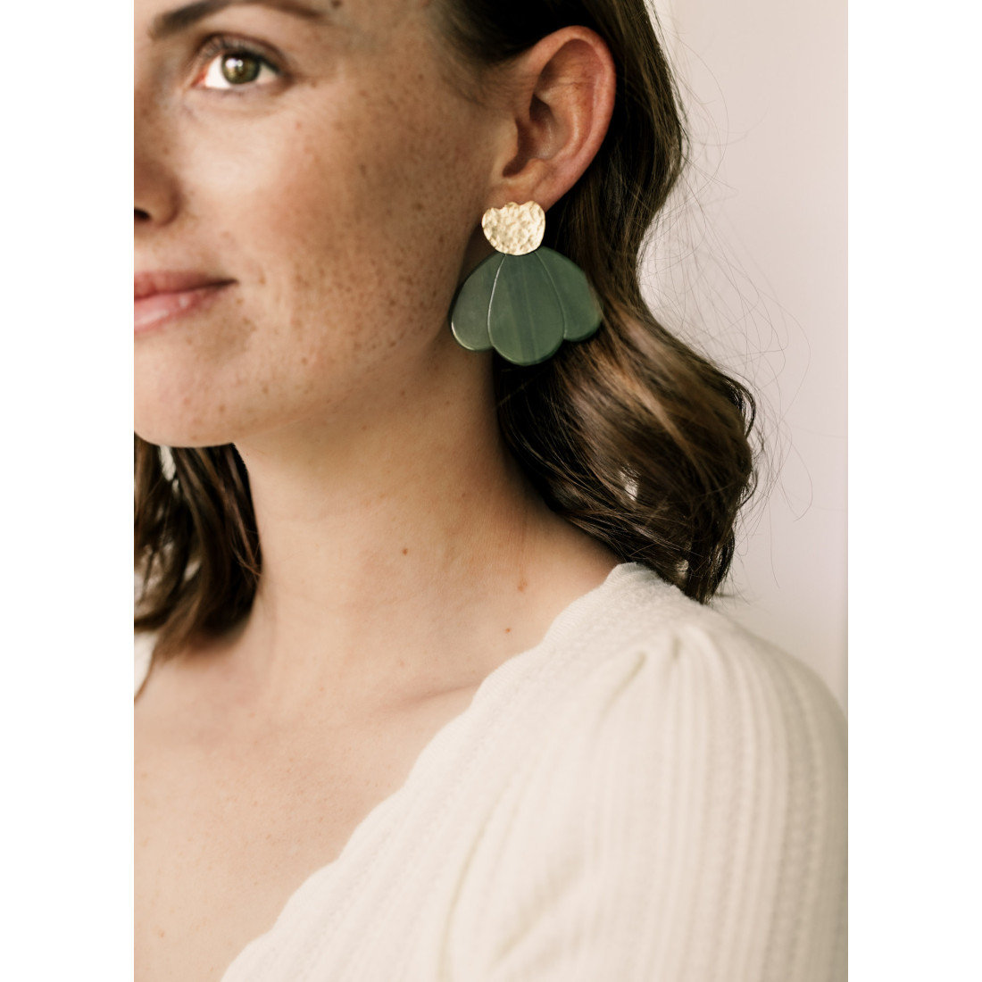 Ces boucles d'oreilles pour oreilles percées dorées avec leurs pétales en acryliques sont disponibles dans 5 coloris : bleu, vert, blanc, corail et violet.