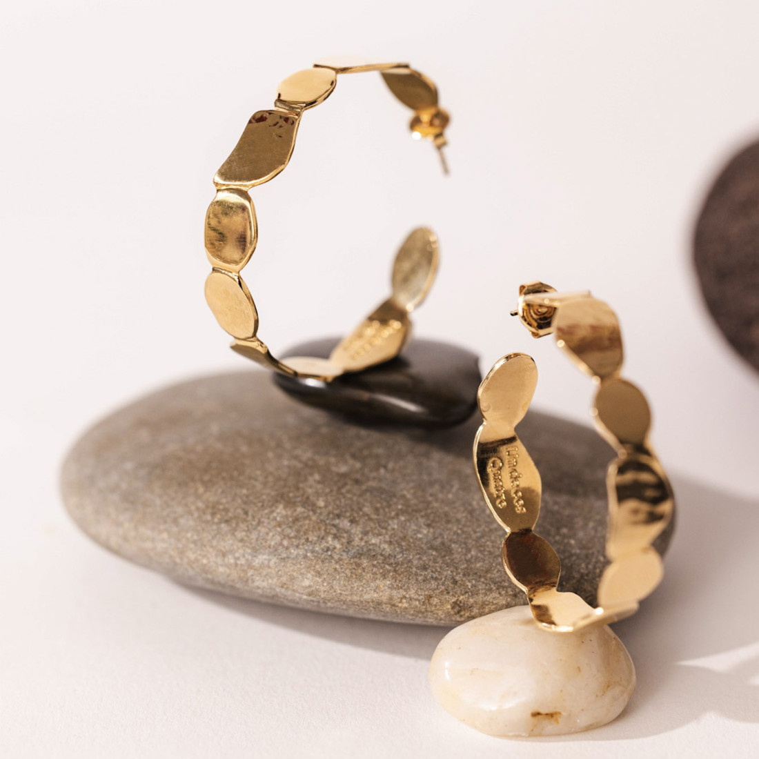 Les créoles Kanso, plaqué or 3 microns 24 carats et fabriquées en France, s’inspirent des pas japonais, ces pierres aux formes organiques qui ponctuent les jardins zen. Chaque courbe rappelle une histoire paisible et invite à la contemplation, offrant des bijoux au design unique, empreints de sérénité et d’élégance.