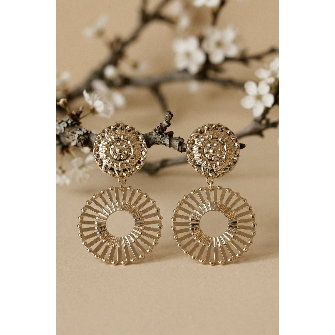 Des boucles d'oreilles rondes au motif floral