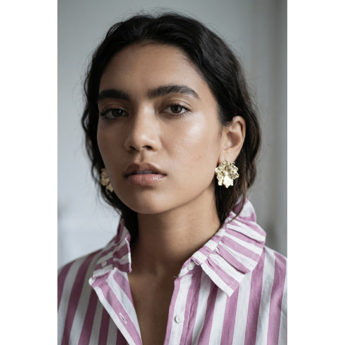 Les boucles d’oreilles Camélia reprennent la forme d’une fleur avec un travail de texture en relief qui donne du caractère au bijou. Les volumes irréguliers font ressortir la dorure du bijoux.