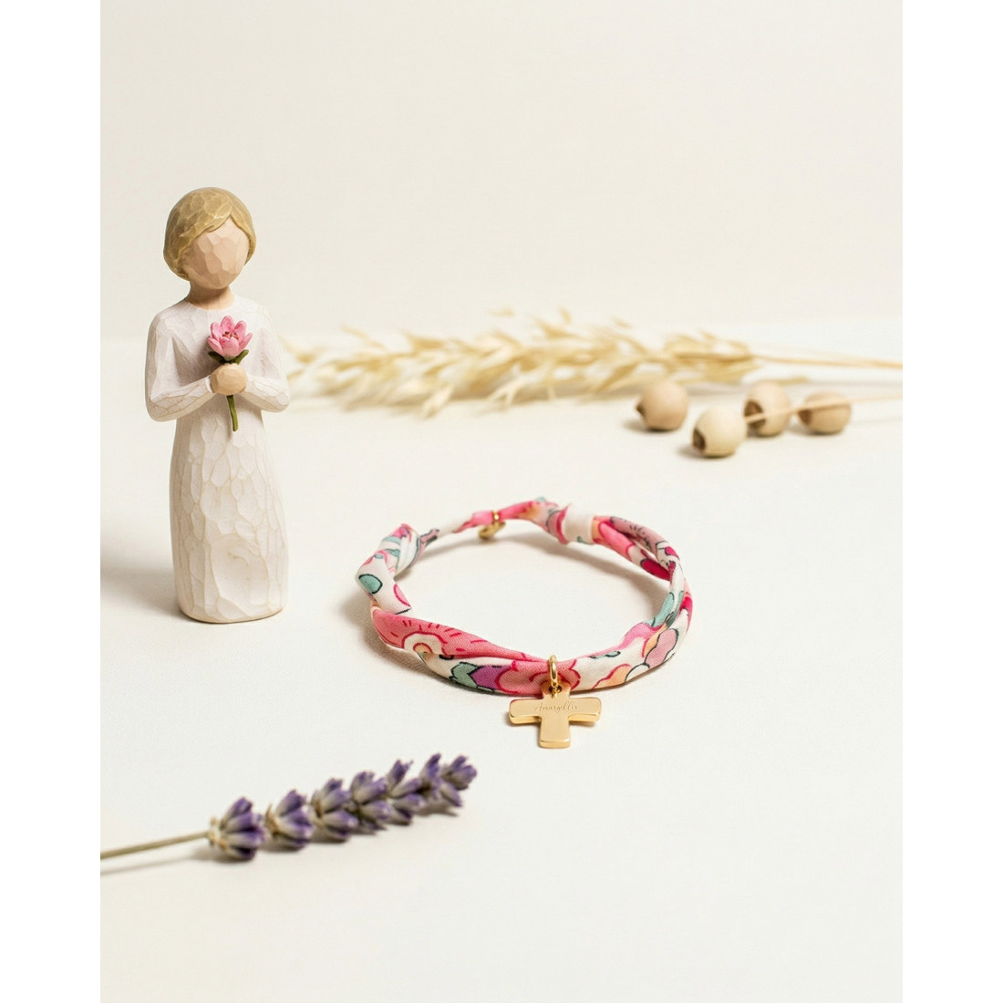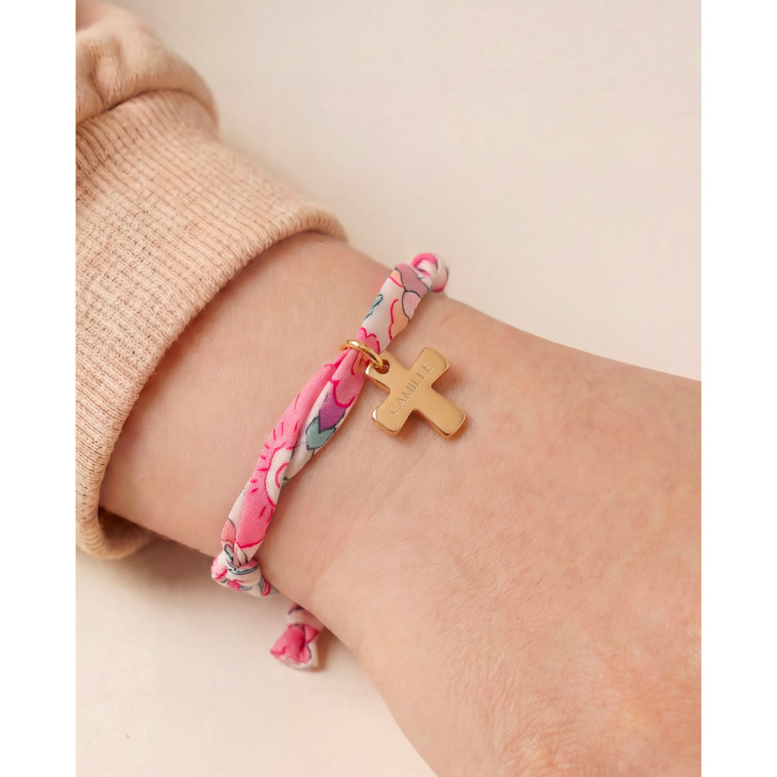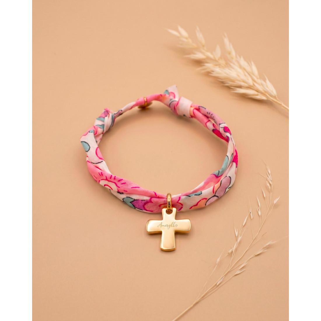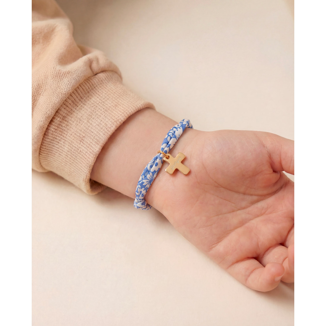 Ce bracelet est bien plus qu’un accessoire : c’est un bijou religieux personnalisé, conçu pour durer. Le plaqué or 3 microns garantit une excellente tenue dans le temps, sans ternir. Le tissu liberty, quant à lui, apporte une touche bohème et romantique qui plaît à toutes les générations. Enfin, la belle croix dorée, épaisse et moderne, en fait un bijou religieux plein de sens qu'on portera avec fierté.