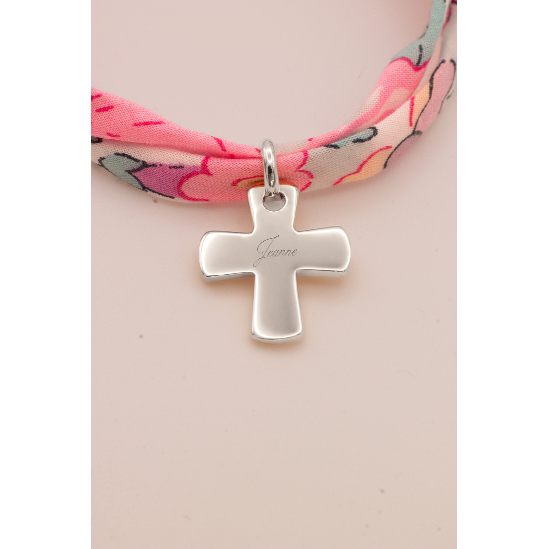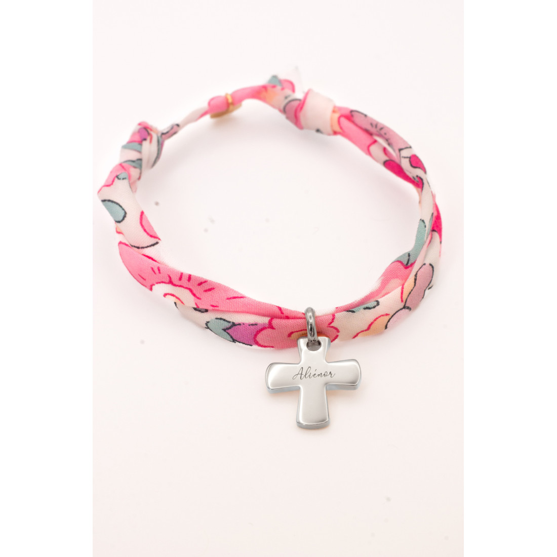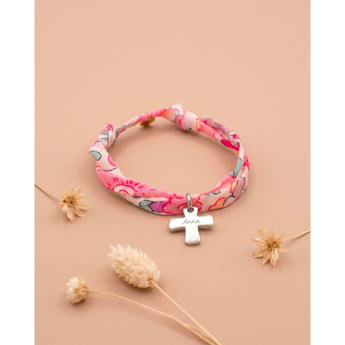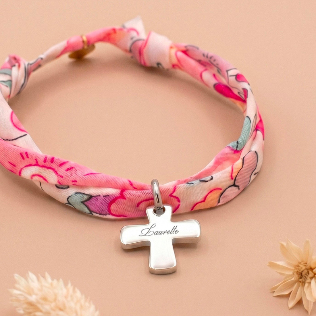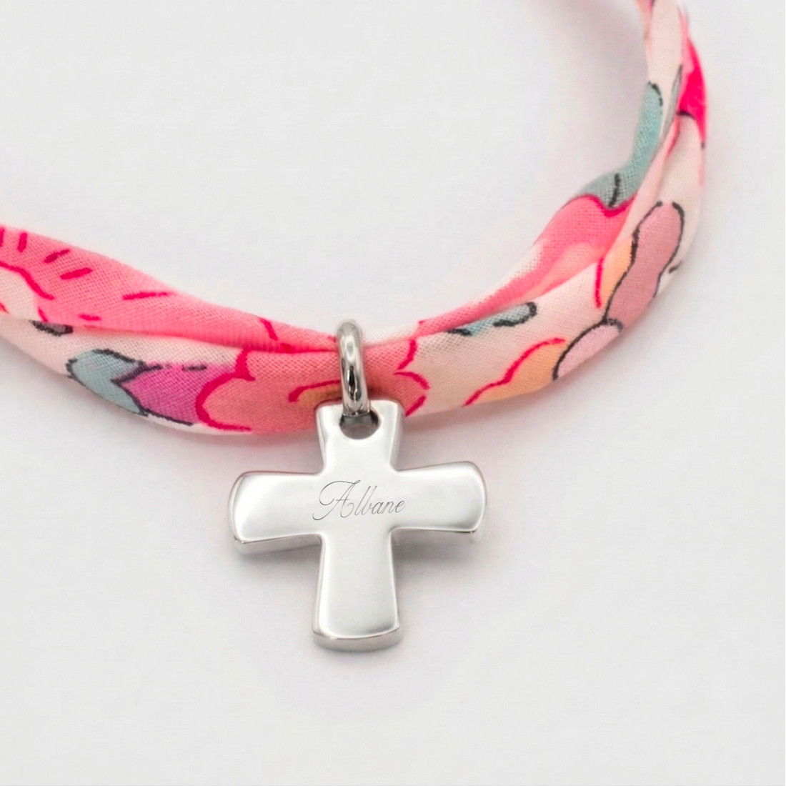 Ce bracelet est bien plus qu’un accessoire : c’est un bijou religieux personnalisé, conçu pour durer. L'argent 925 garantit une excellente tenue dans le temps, sans ternir. Le tissu liberty, quant à lui, apporte une touche bohème et romantique qui plaît à toutes les générations. Enfin, la belle croix argentée, épaisse et moderne, en fait un bijou religieux plein de sens qu'on portera avec fierté.