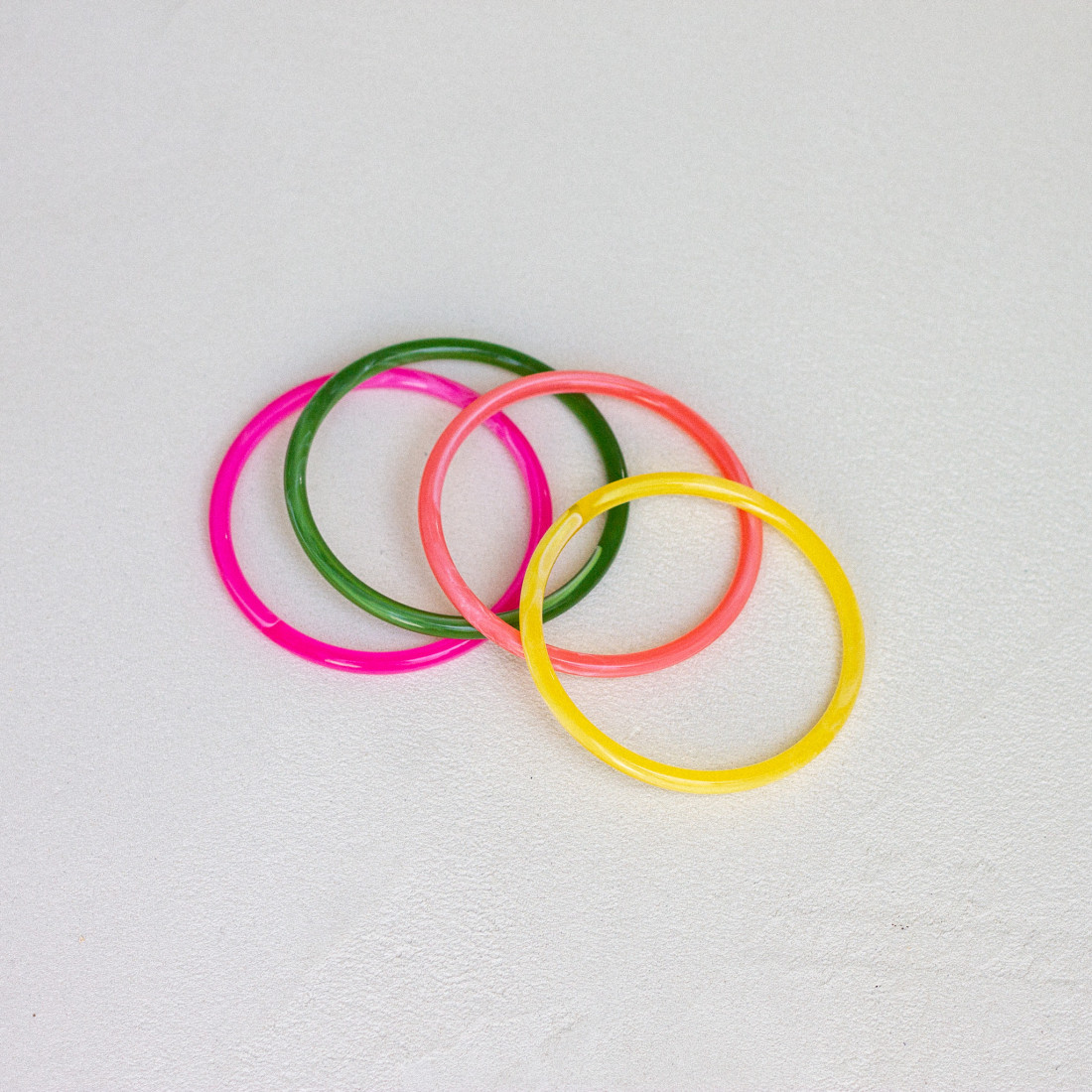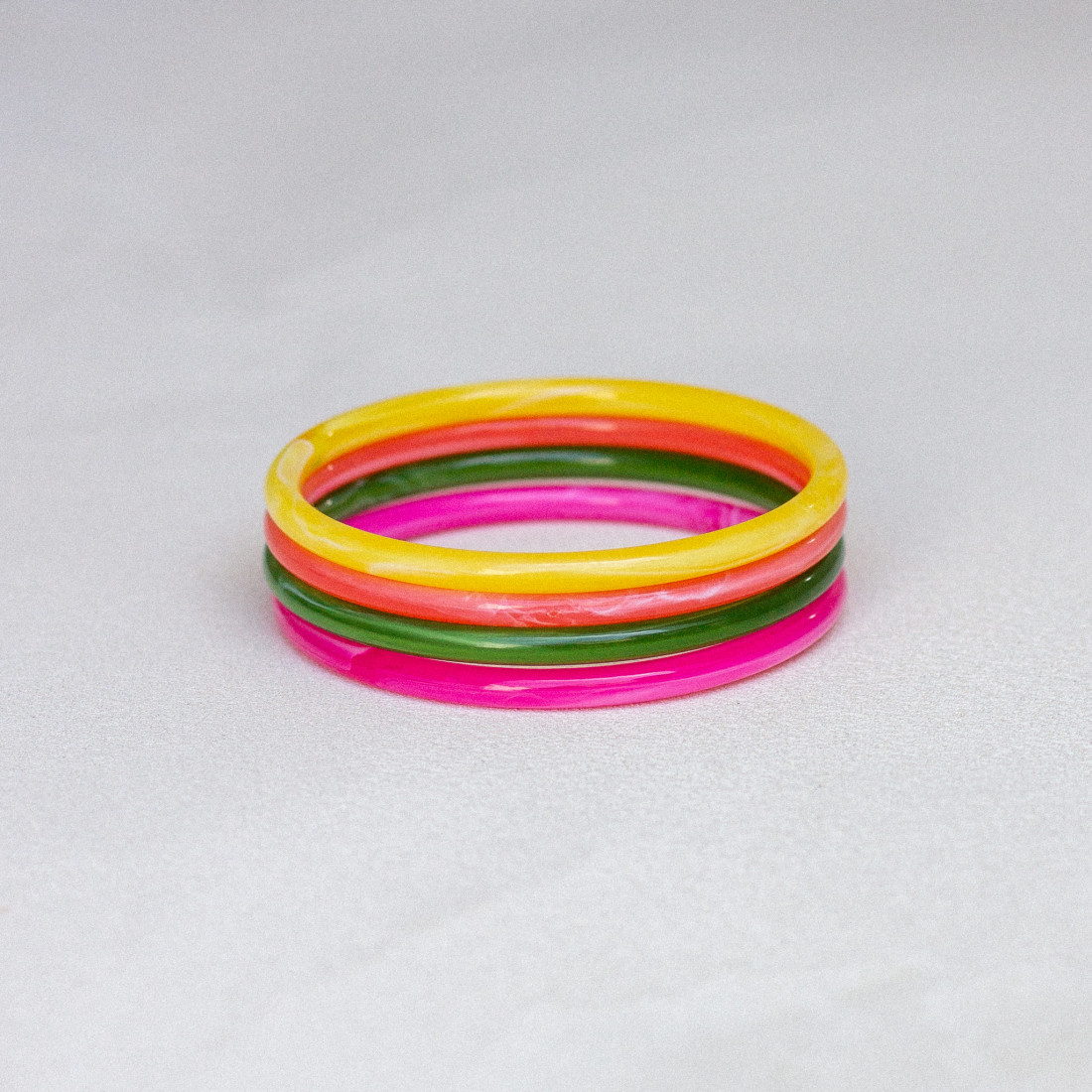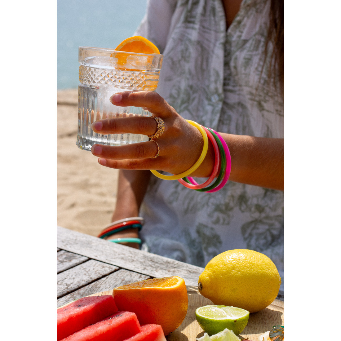 Laissez-vous séduire par le Pack Woo Woo, des bracelets joncs en acétate aux teintes acidulées qui dynamisent votre look d’été !