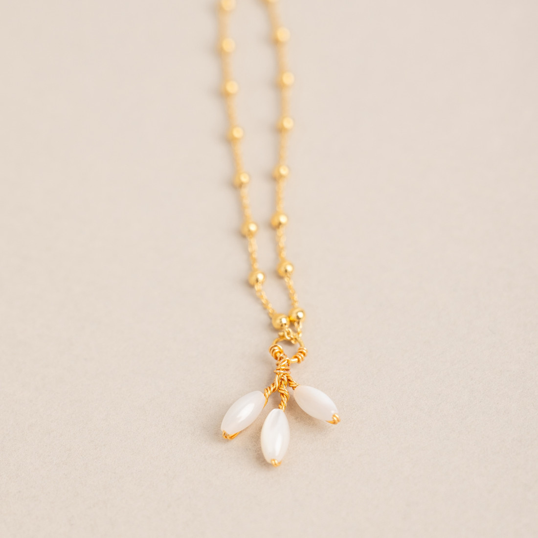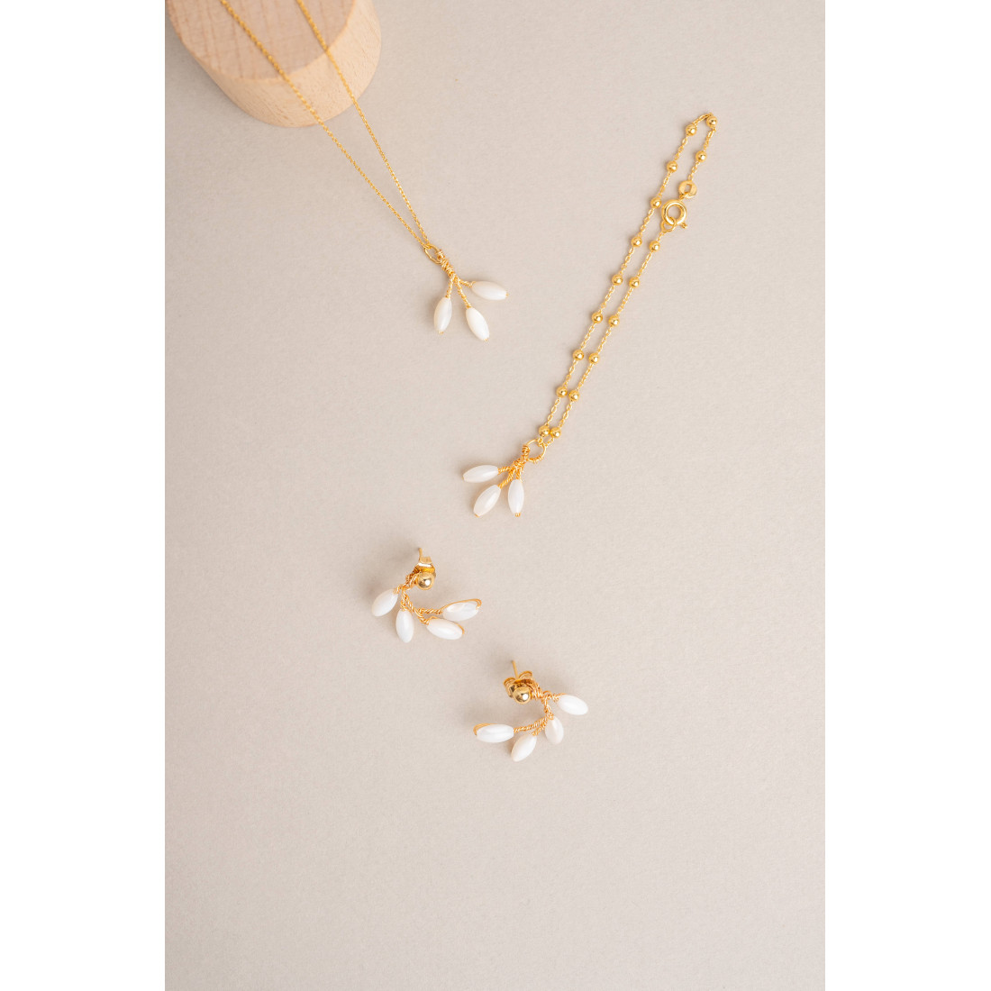 - Matériaux nobles : l'alliance du plaqué or 3 microns et de la nacre véritable assure un bijou que vous pourrez chérir et reporter bien après le grand jour.