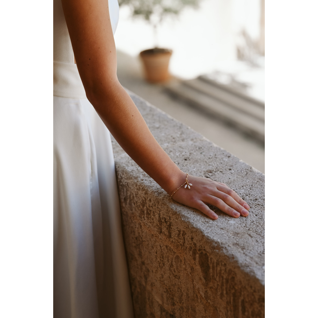 Chaque détail de ce bracelet a été étudié dans les ateliers des Perles de la Bastide, en exclusivité pour Comptoir Doré, pour offrir une expérience unique aux mariées :