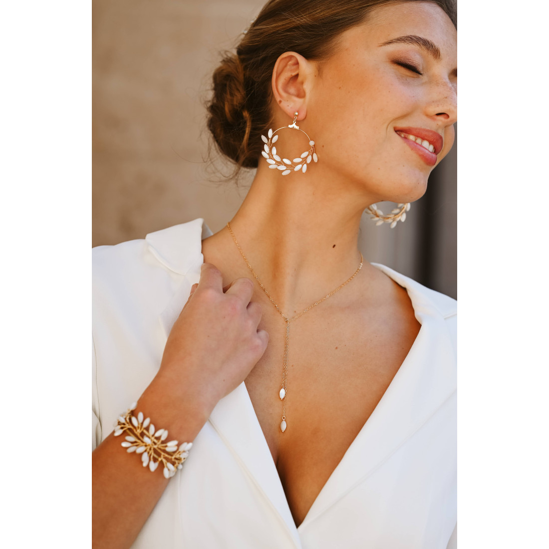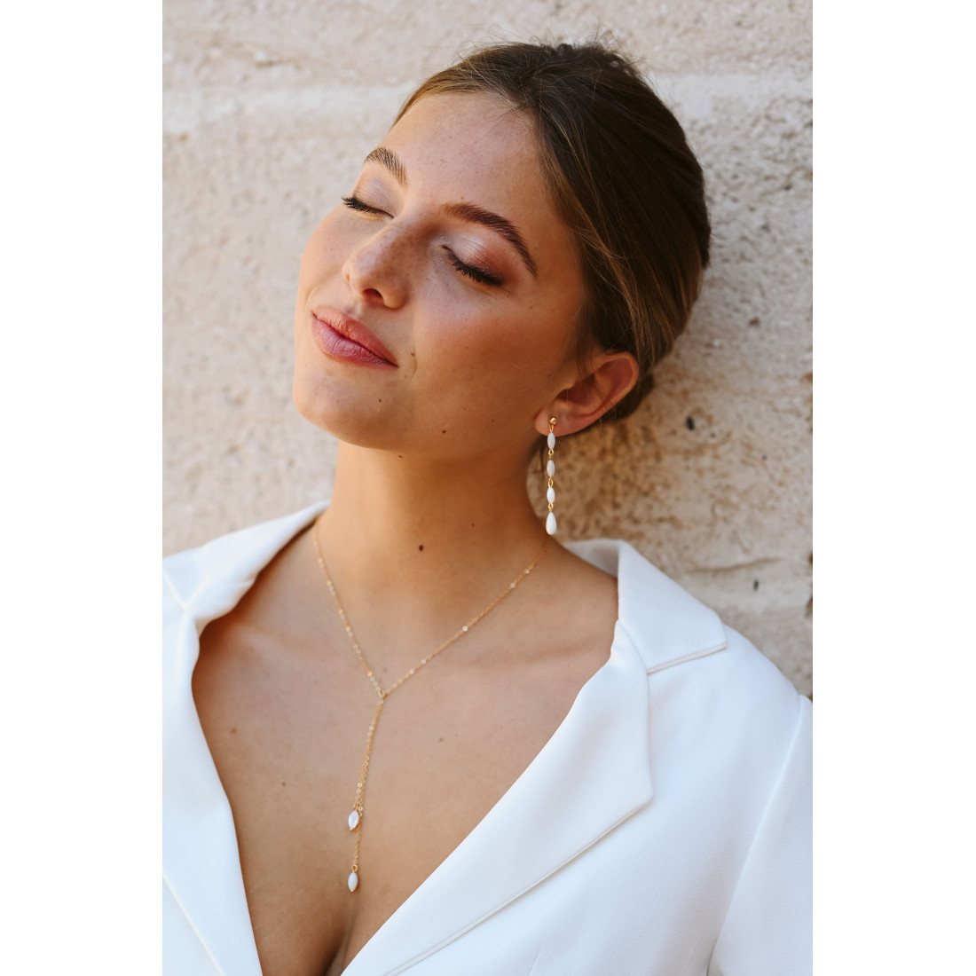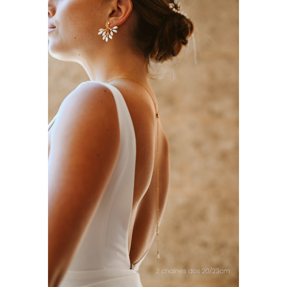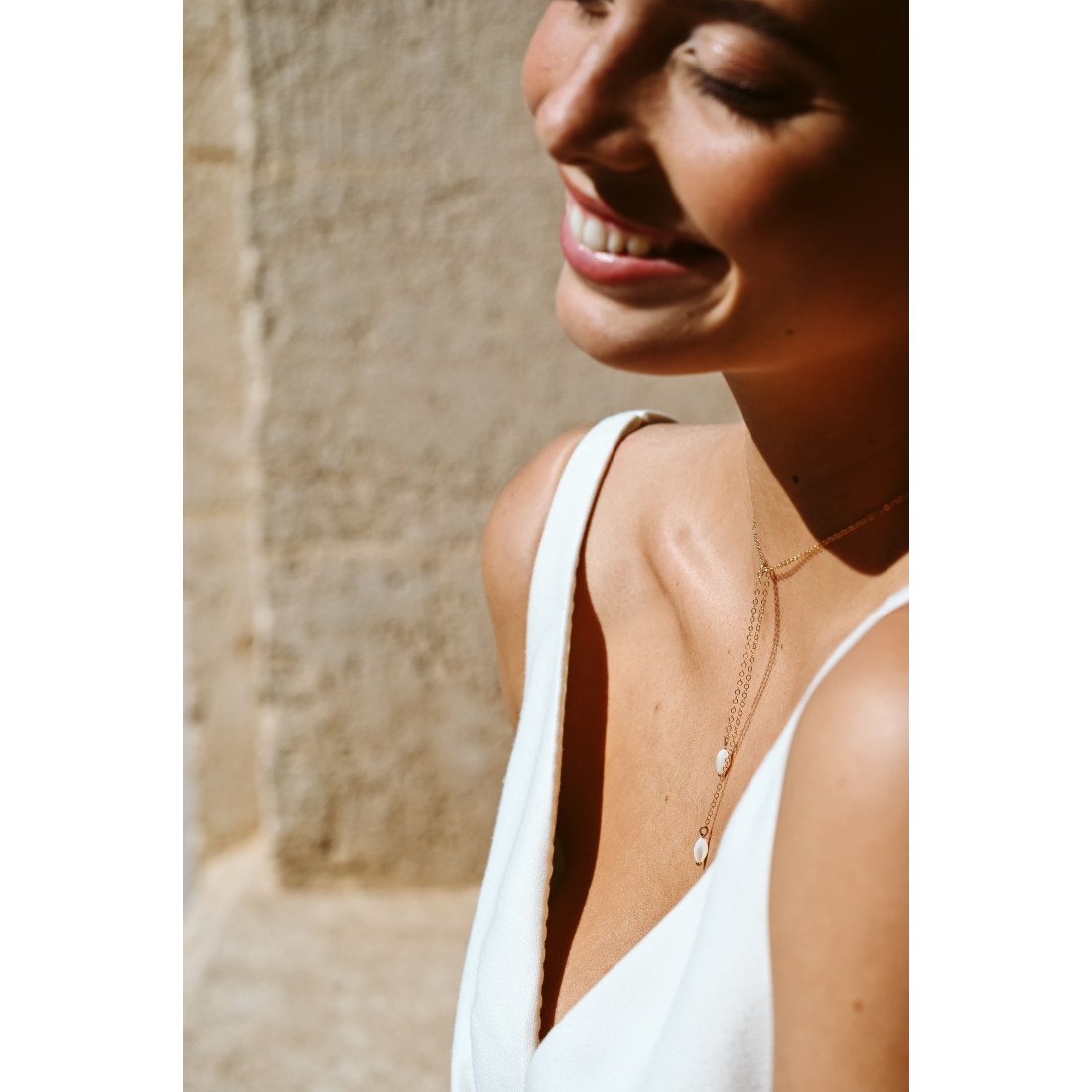 Le collier long Demeter est une pièce maîtresse de notre collection nuptiale. Inspiré par la nature, ce bijou incarne la féminité et la pureté. Sa structure en forme de Y, aussi appelée collier lariat, a été pensée pour sublimer le port de tête et mettre en valeur le buste avec une discrétion raffinée. Il se transforme en collier de dos en choisissant les options, chainette courte ou double chaines.