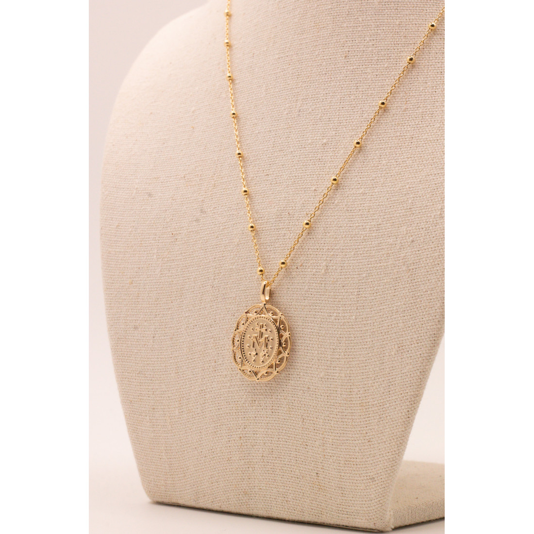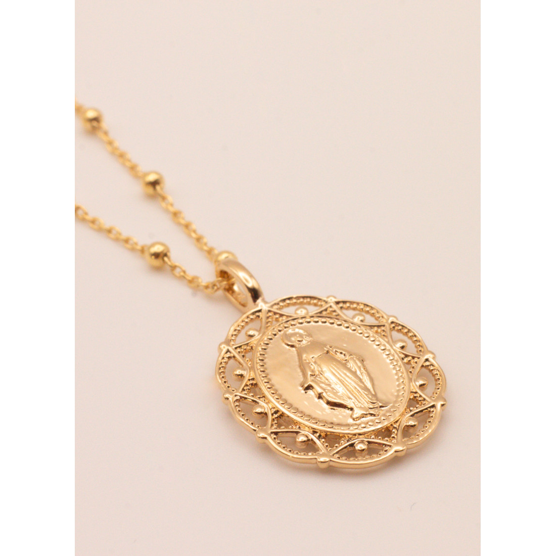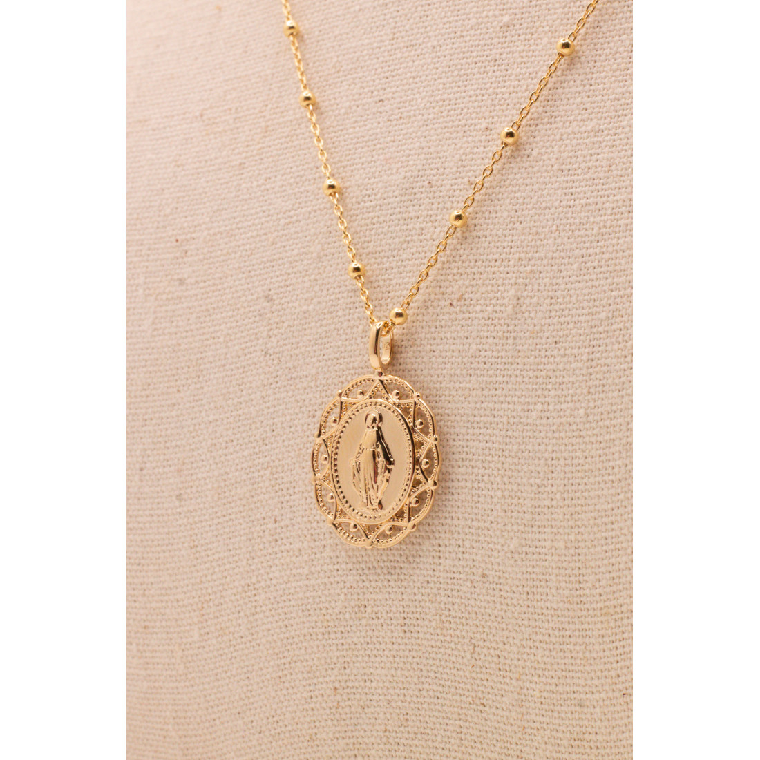 - Style du pendentif : Médaille miraculeuse ovale ajourée.