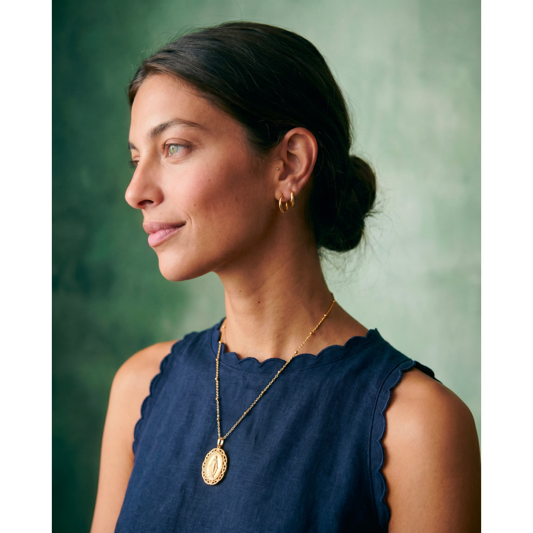 - Style : Un bijou de caractère qui se suffit à lui-même ou s'accumule avec d'autres colliers dorés.