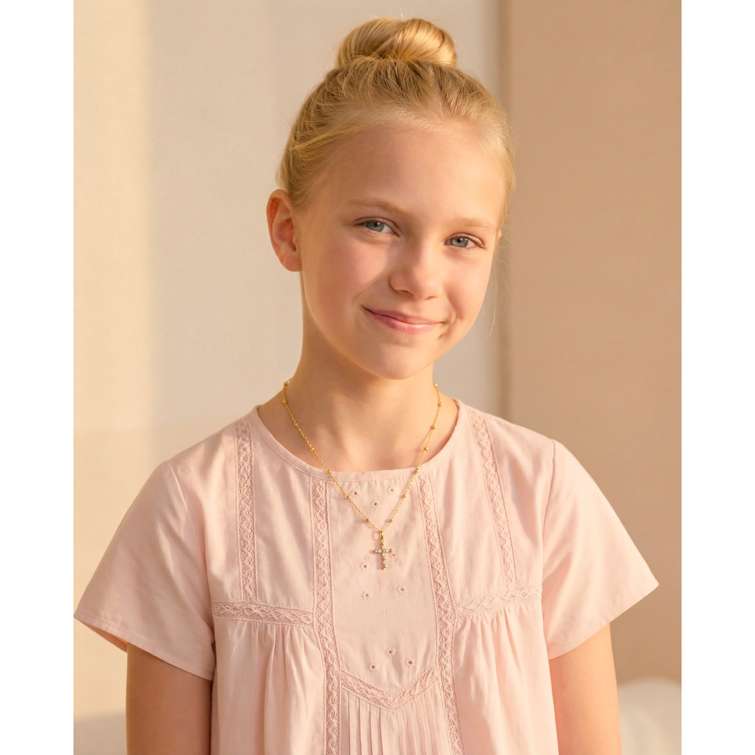 Conçu en plaqué or 3 microns pour assurer une excellente tenue dans le temps, ce collier est le choix idéal pour marquer un événement important : baptême, communion ou confirmation.