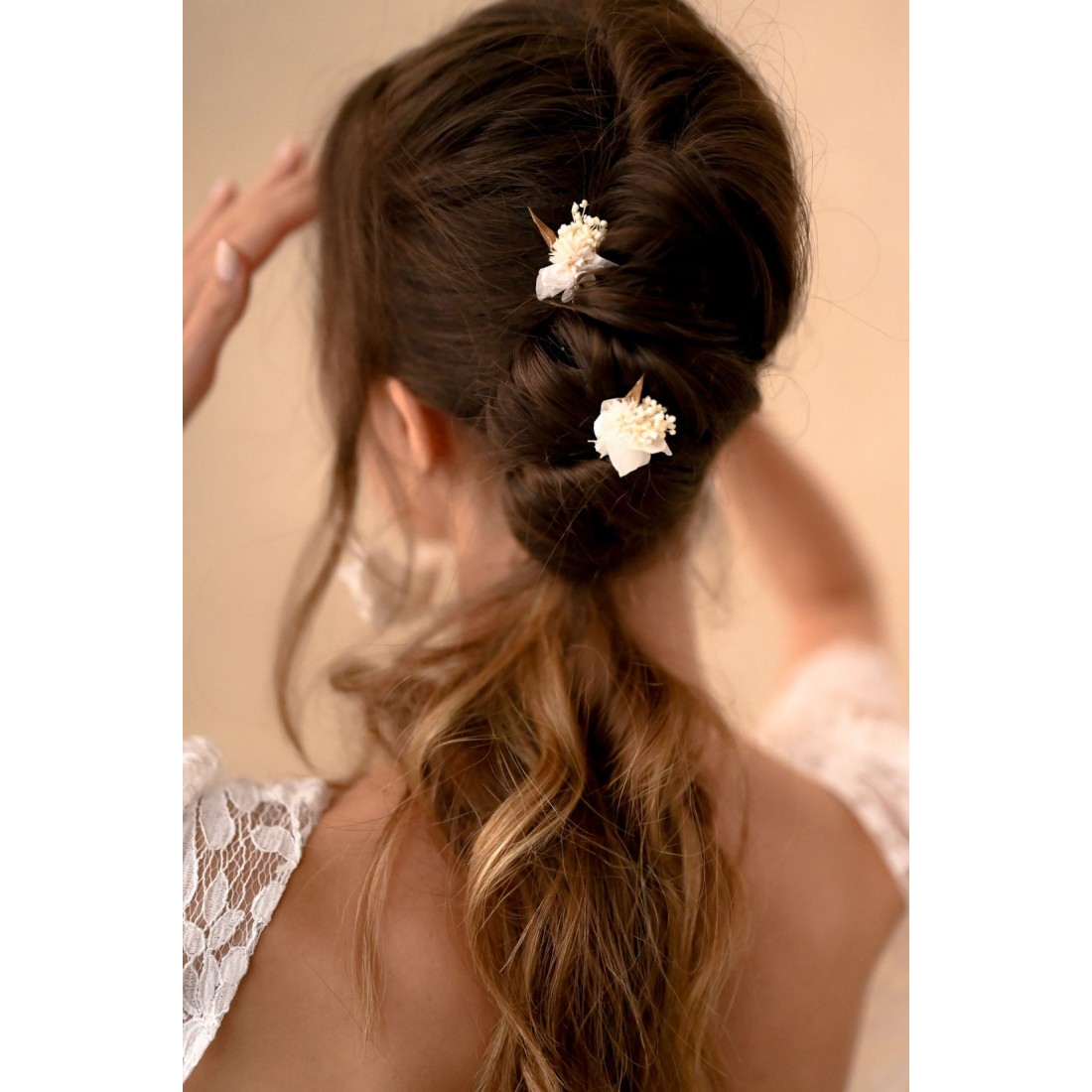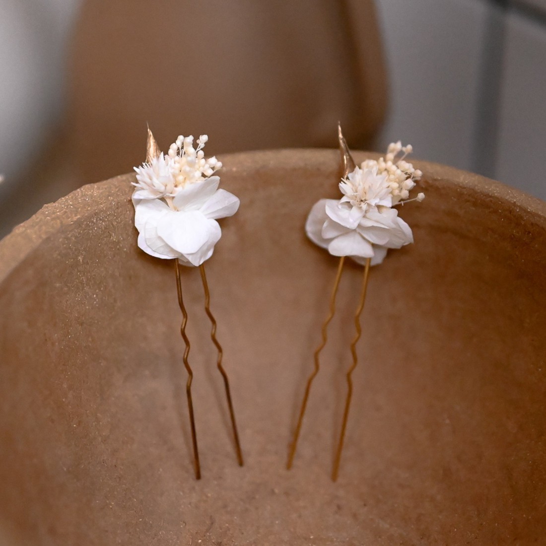 Pic à cheveux fleurs séchées blanches - L'Atelier de Clotilde - Comptoir Doré