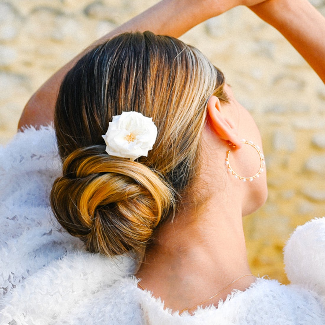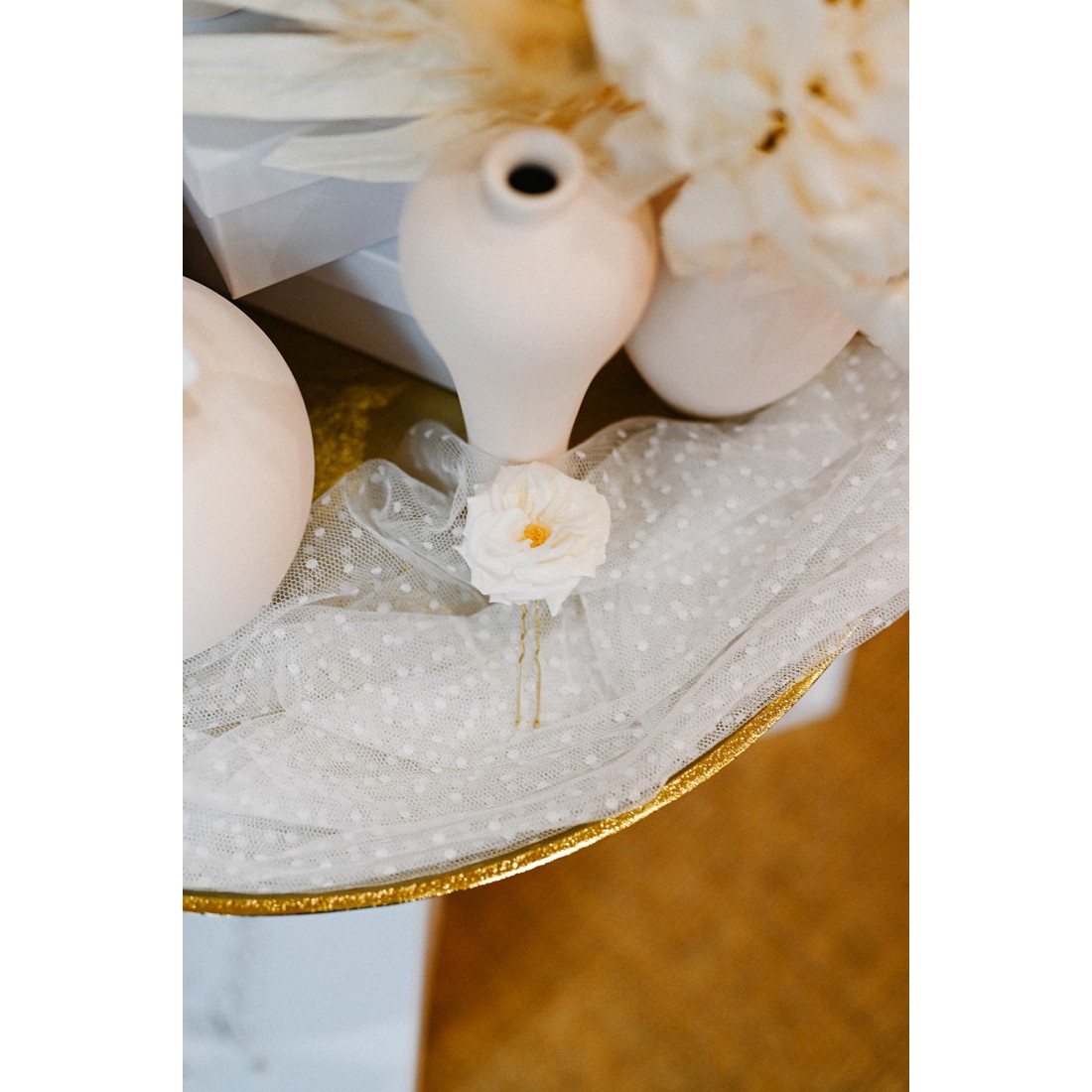 Pic à cheveux entièrement fait à la main en France, composé d'une rose anglaise blanche stabilisées. À l’abri de l'humidité ce pic se conservera des années pour orner vos plus belles coiffures.