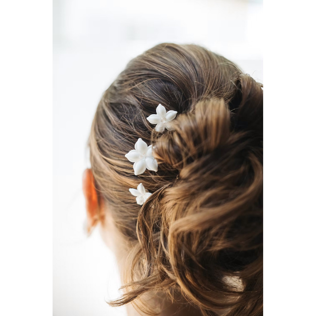 Ces épingles à chignon se piquent dans un chignon, sur une belle tresse ou une demi-attache, pour apporter à votre coiffure de mariée une touche bohème et fleurie très contemporaine.