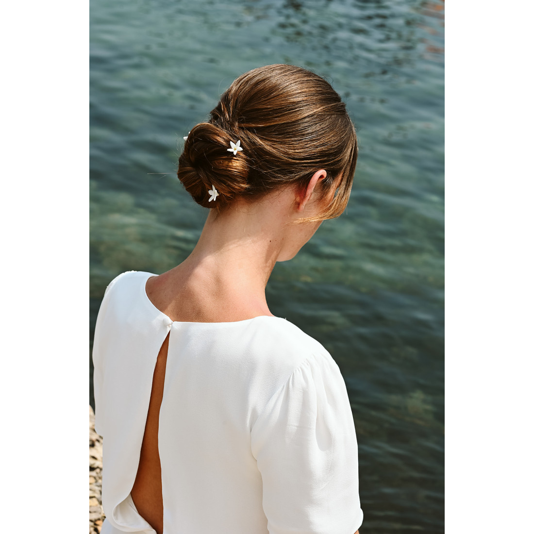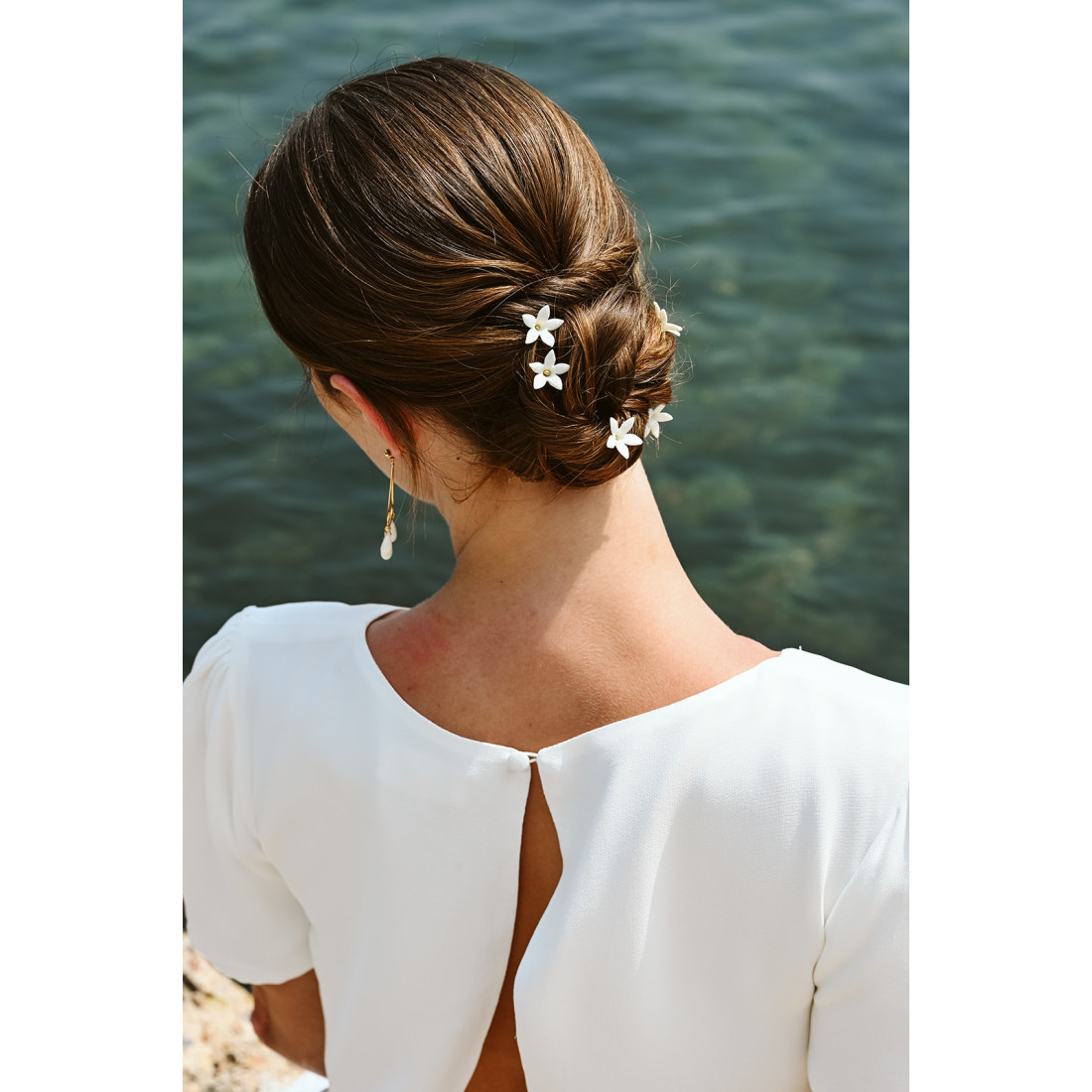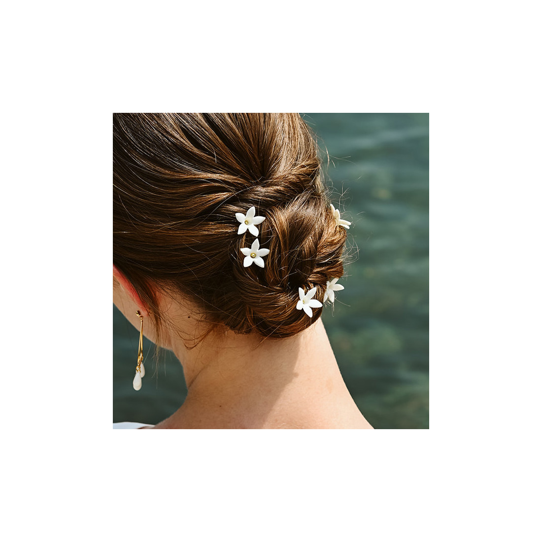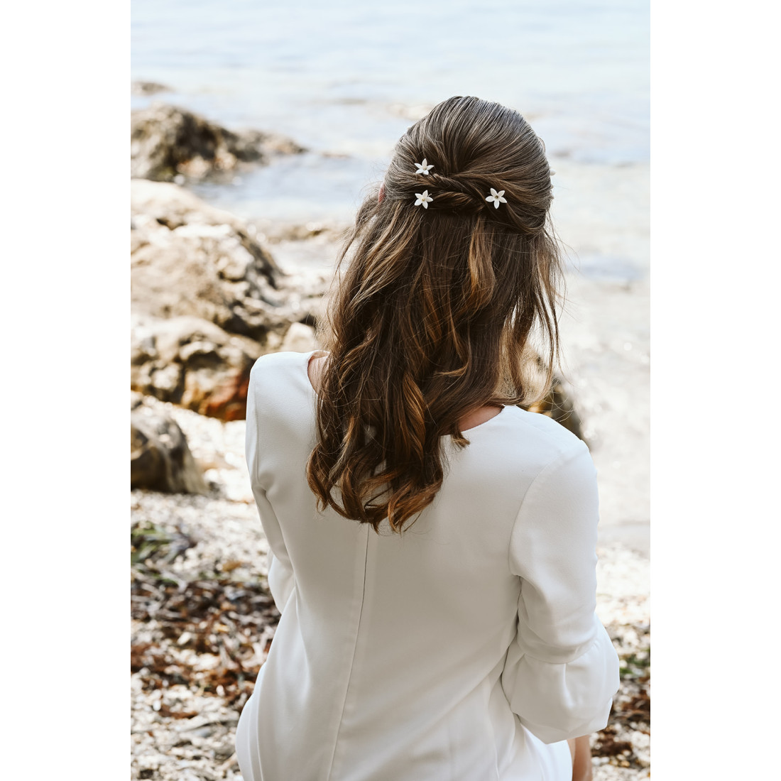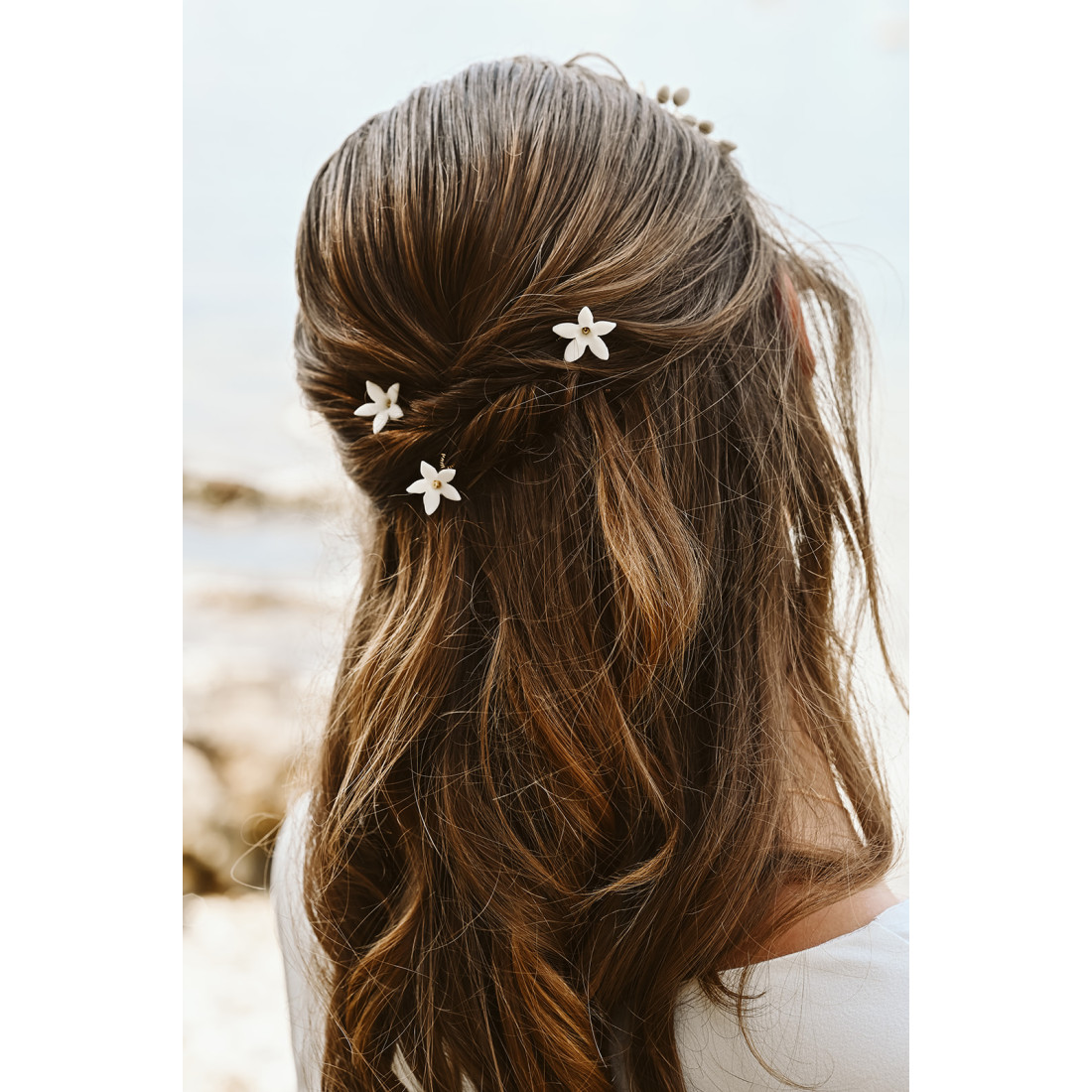 Magnifiques pics à cheveux mariée ornés d'une fleur en porcelaine froide. Ces épingles à cheveux sont idéales pour accessoiriser un chignon de mariée, un wavy, une demi-attache... Elles sont légères et florales pour orner votre coiffure avec délicatesse.