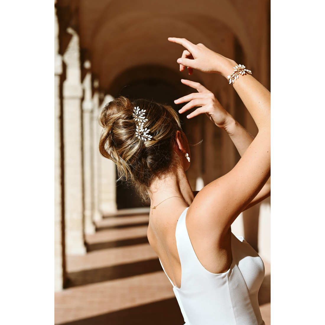 En solo : Piquée sur le côté d'un chignon banane ou au centre d'un chignon bas