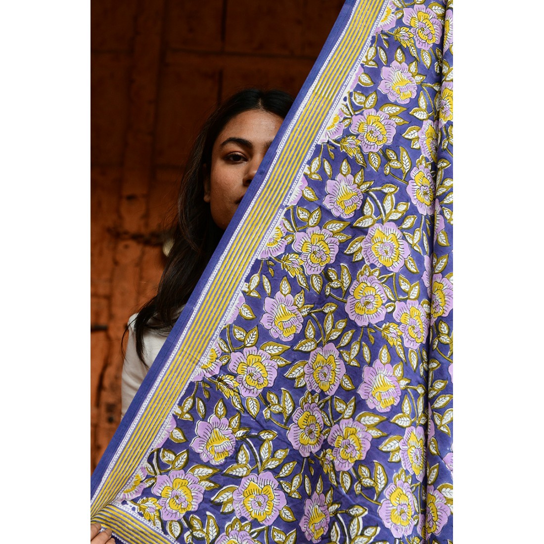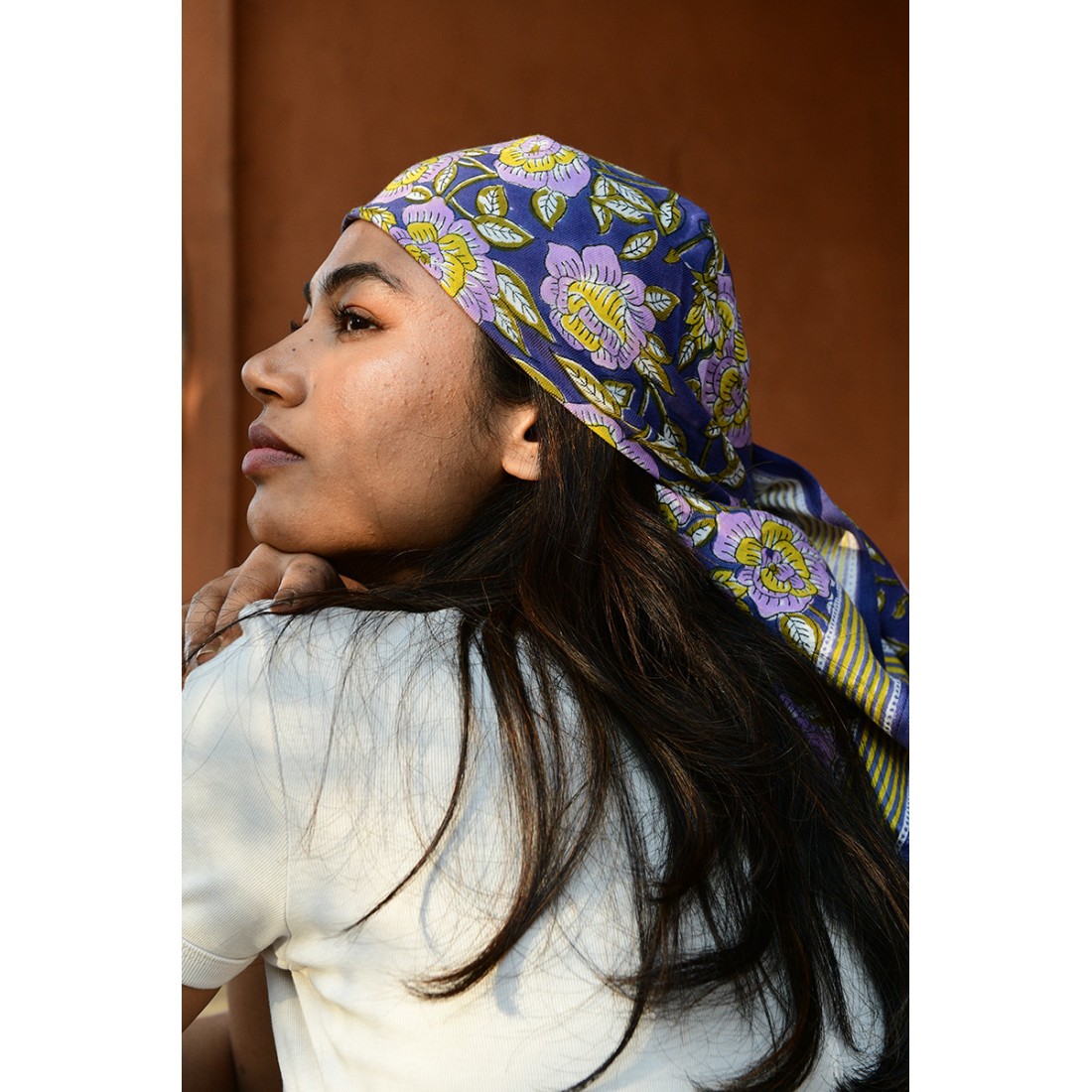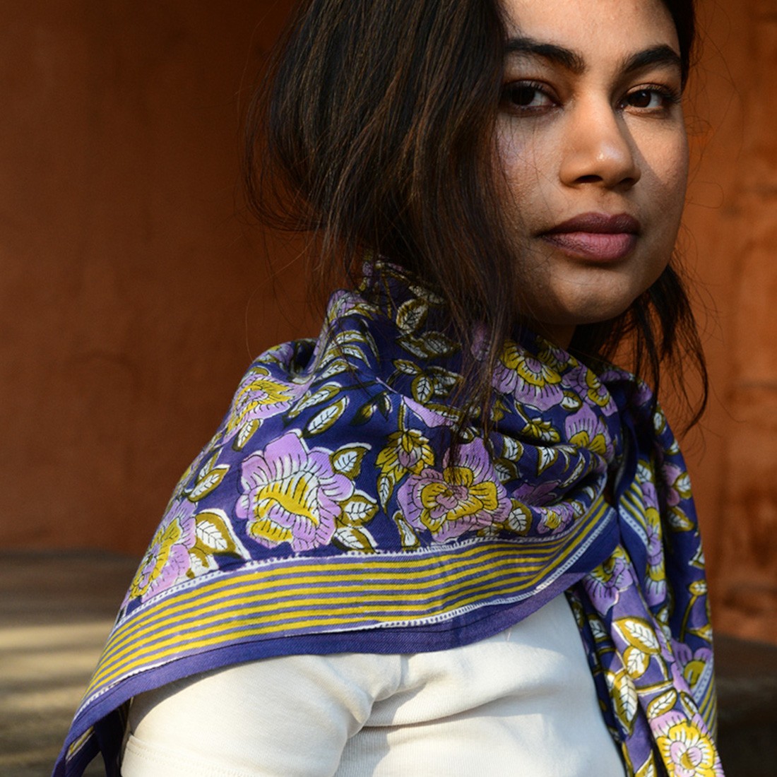 Grand foulard en blockprint indien, modèle 113 Bleu.