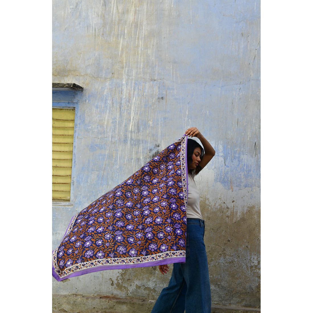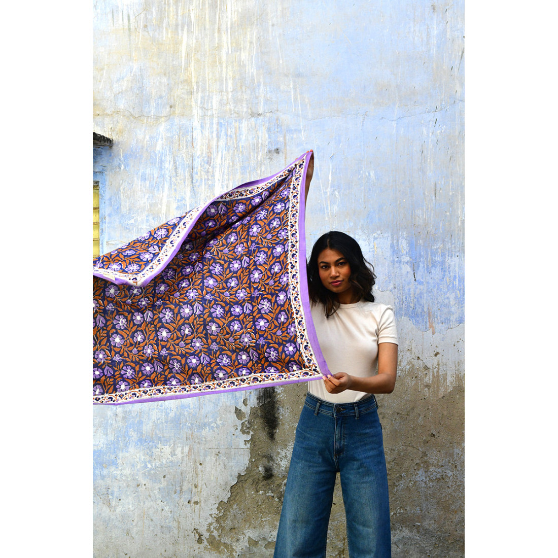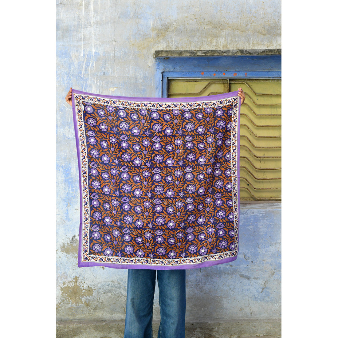 100% coton et teintures naturelles. Imprimé en Inde avec des tampons en bois.