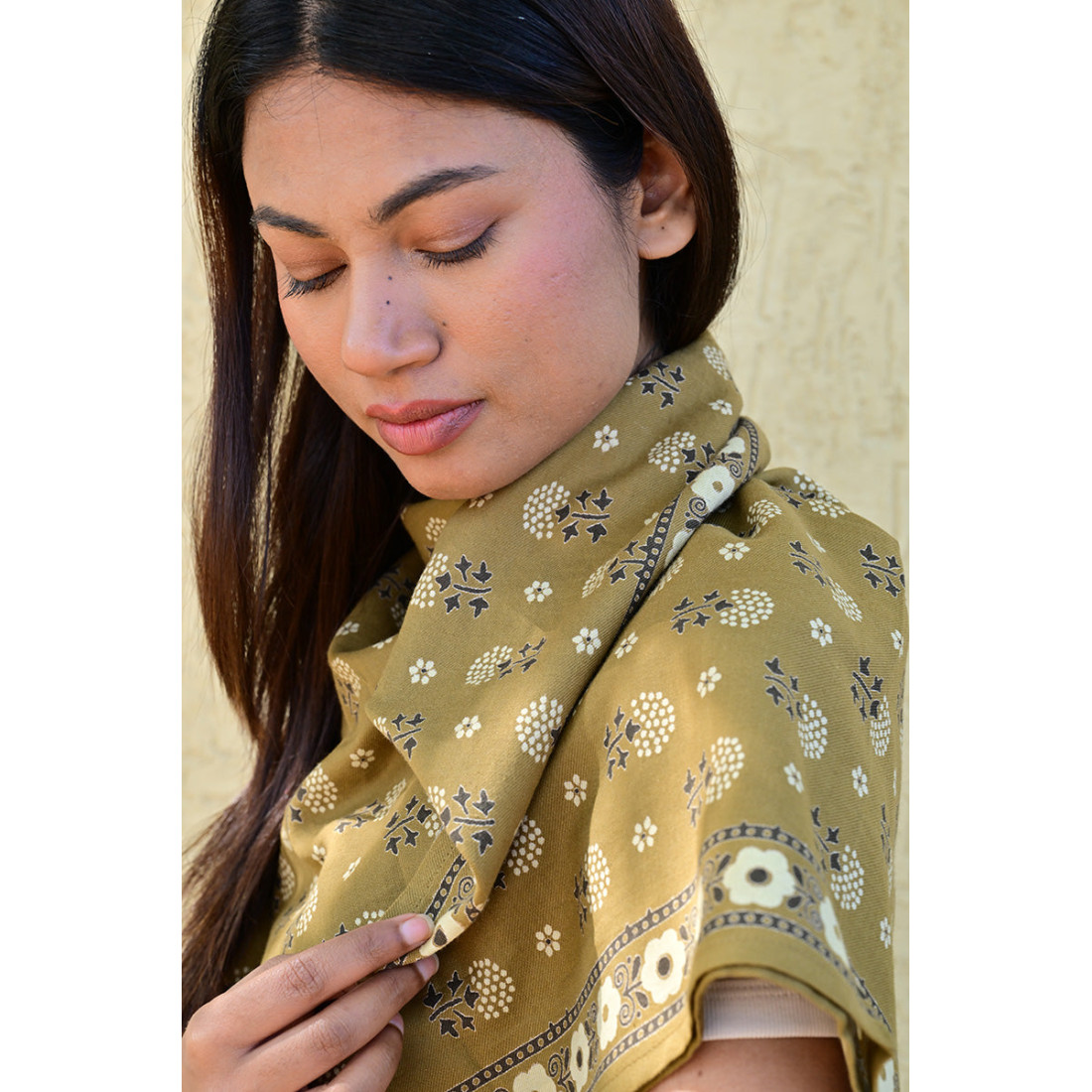 Réalisé exclusivement en 100% twill de coton indien, ce carré de 100x100 cm allie douceur et durabilité. Sa fibre naturelle laisse respirer la peau, rendant ce foulard agréable à porter en toute saison en en faisant un compagnon idéal, été comme hiver.