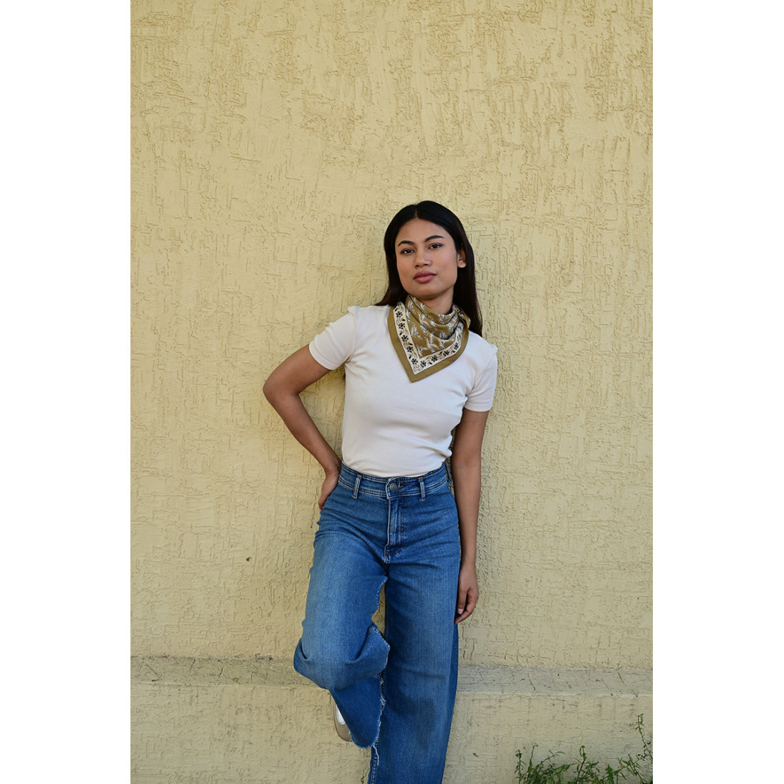 Réalisé exclusivement en 100% twill de coton indien, ce carré de 100x100 cm allie douceur et durabilité. Sa fibre naturelle laisse respirer la peau, rendant ce foulard agréable à porter en toute saison en en faisant un compagnon idéal, été comme hiver.
