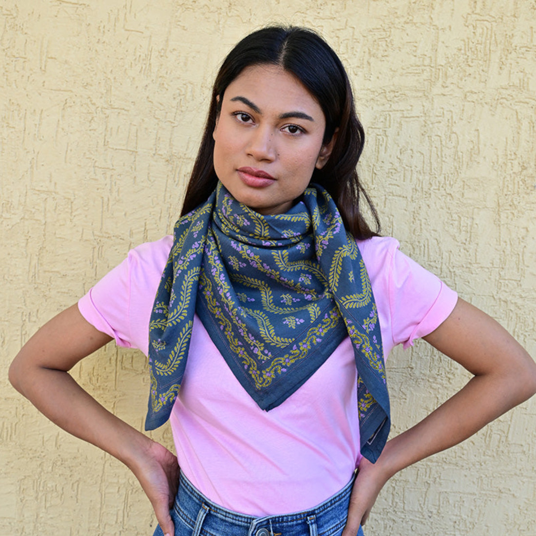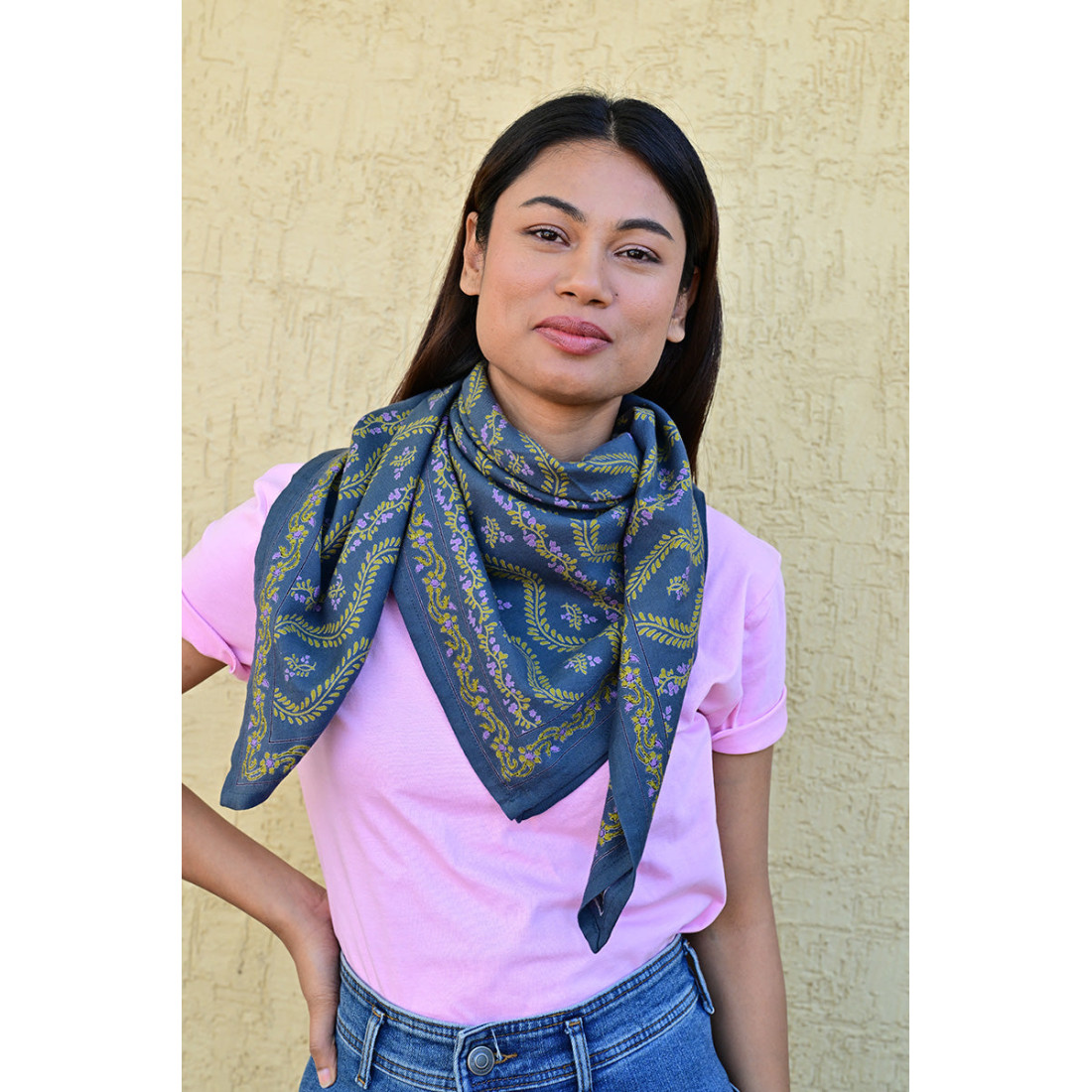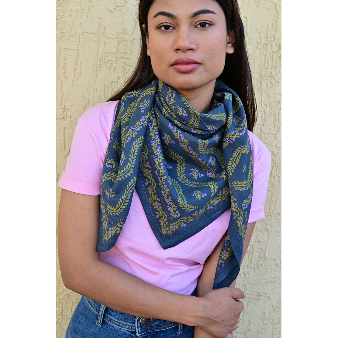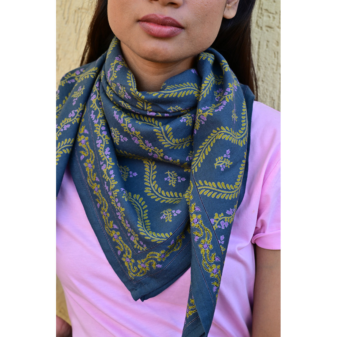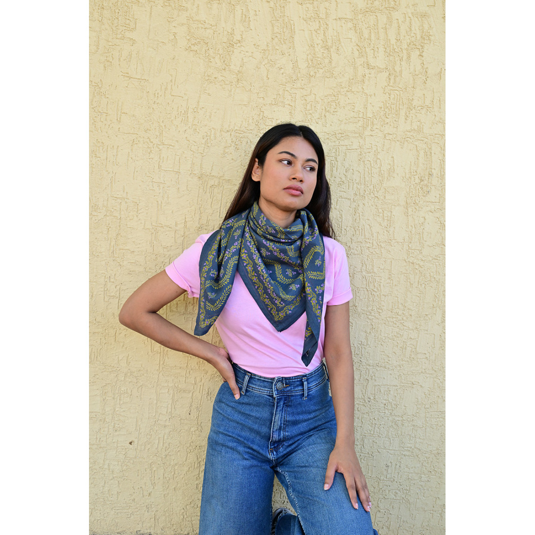 Réalisé exclusivement en 100% twill de coton indien, ce carré de 100x100 cm allie douceur et durabilité. Sa fibre naturelle laisse respirer la peau, rendant ce foulard agréable à porter en toute saison.