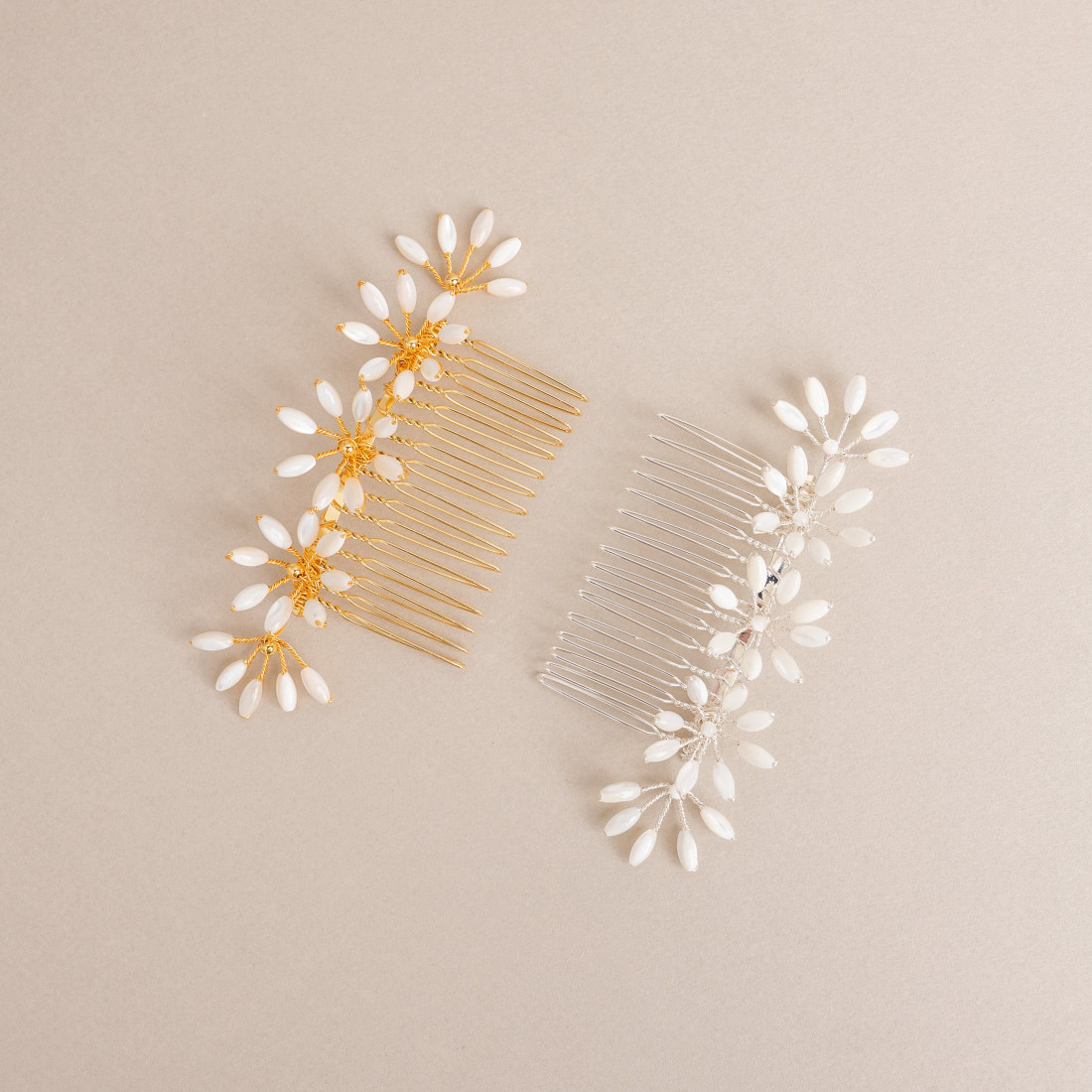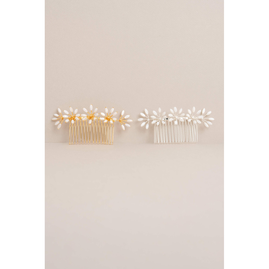 Parfait pour une coiffure de mariée, ce peigne cheveux s’intègre harmonieusement dans un chignon bas, une demi-attache romantique, une coiffure bohème ou des cheveux lâchés ondulés. Son format court permet une tenue facile et discrète, tout en offrant un rendu sophistiqué.