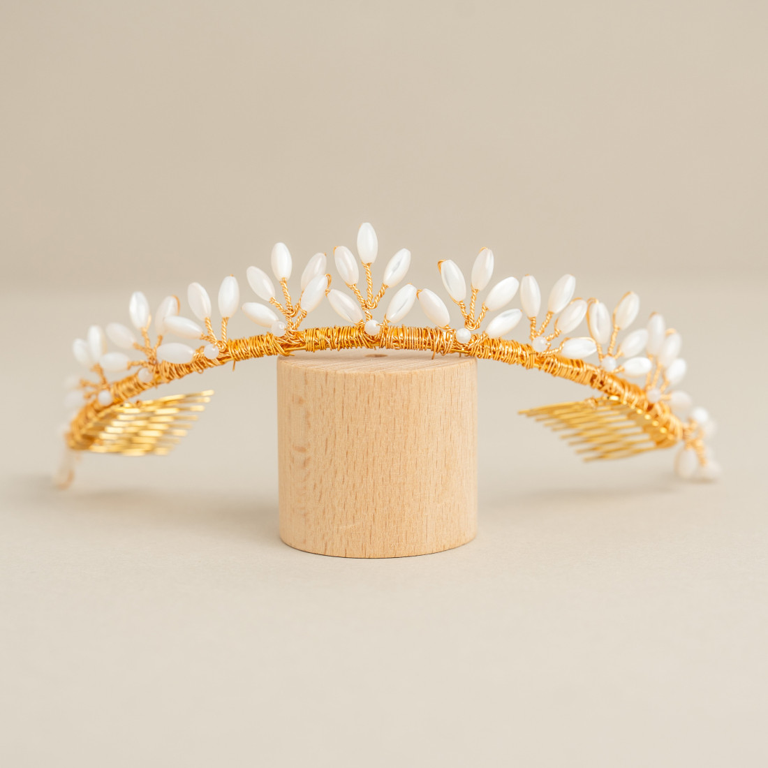 Tiare Capucine – Diadème mariée en Nacre - Les Perles de la Bastide - Comptoir Doré
