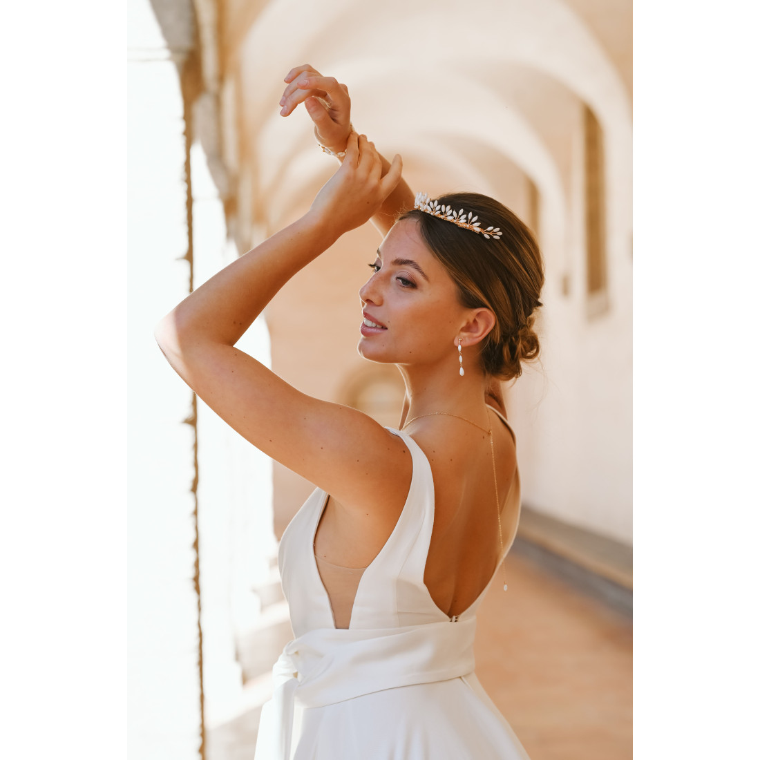 Pensée pour accompagner les mariées dans tous leurs mouvements, la tiare Capucine allie esthétique et technicité :